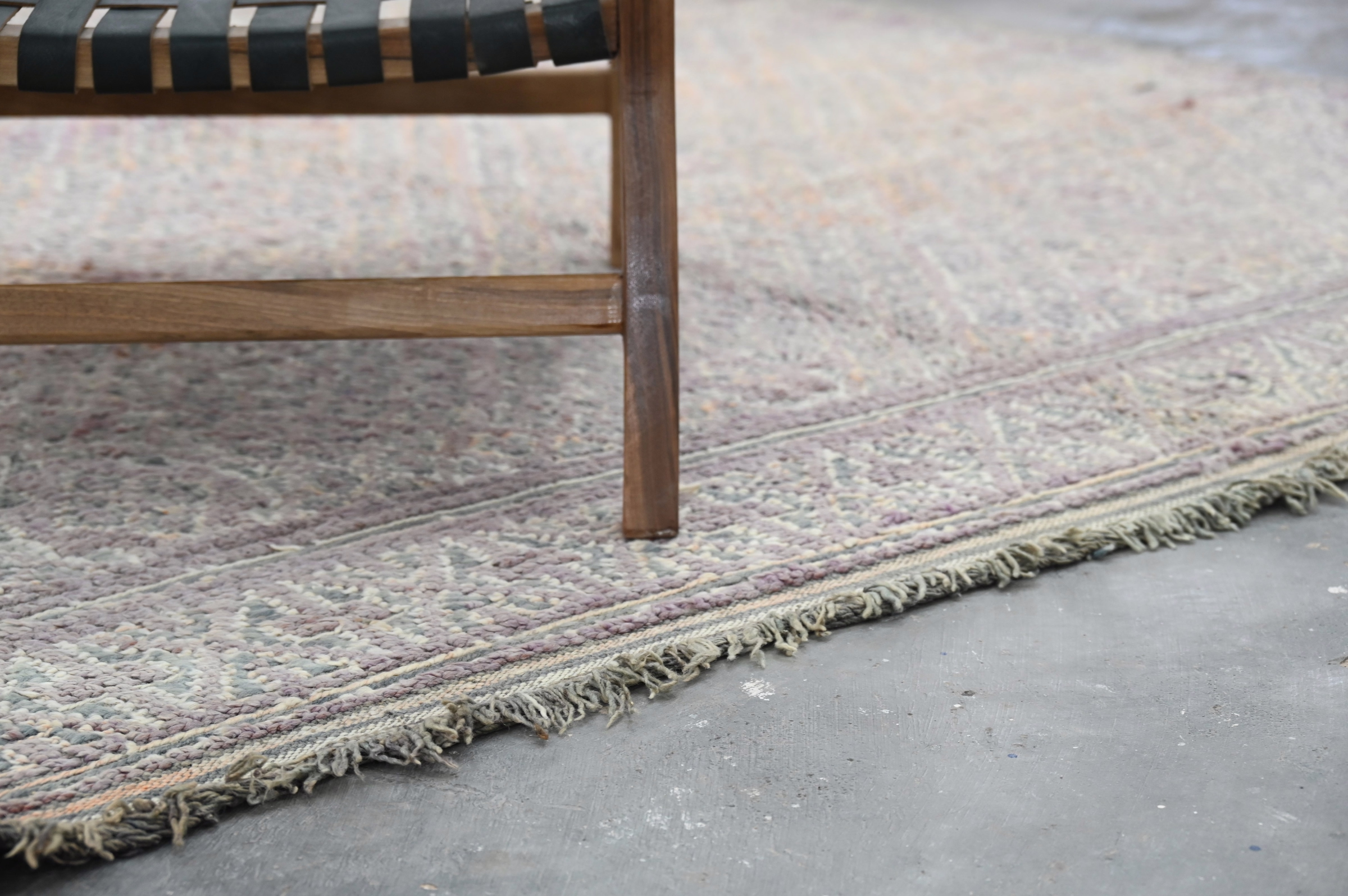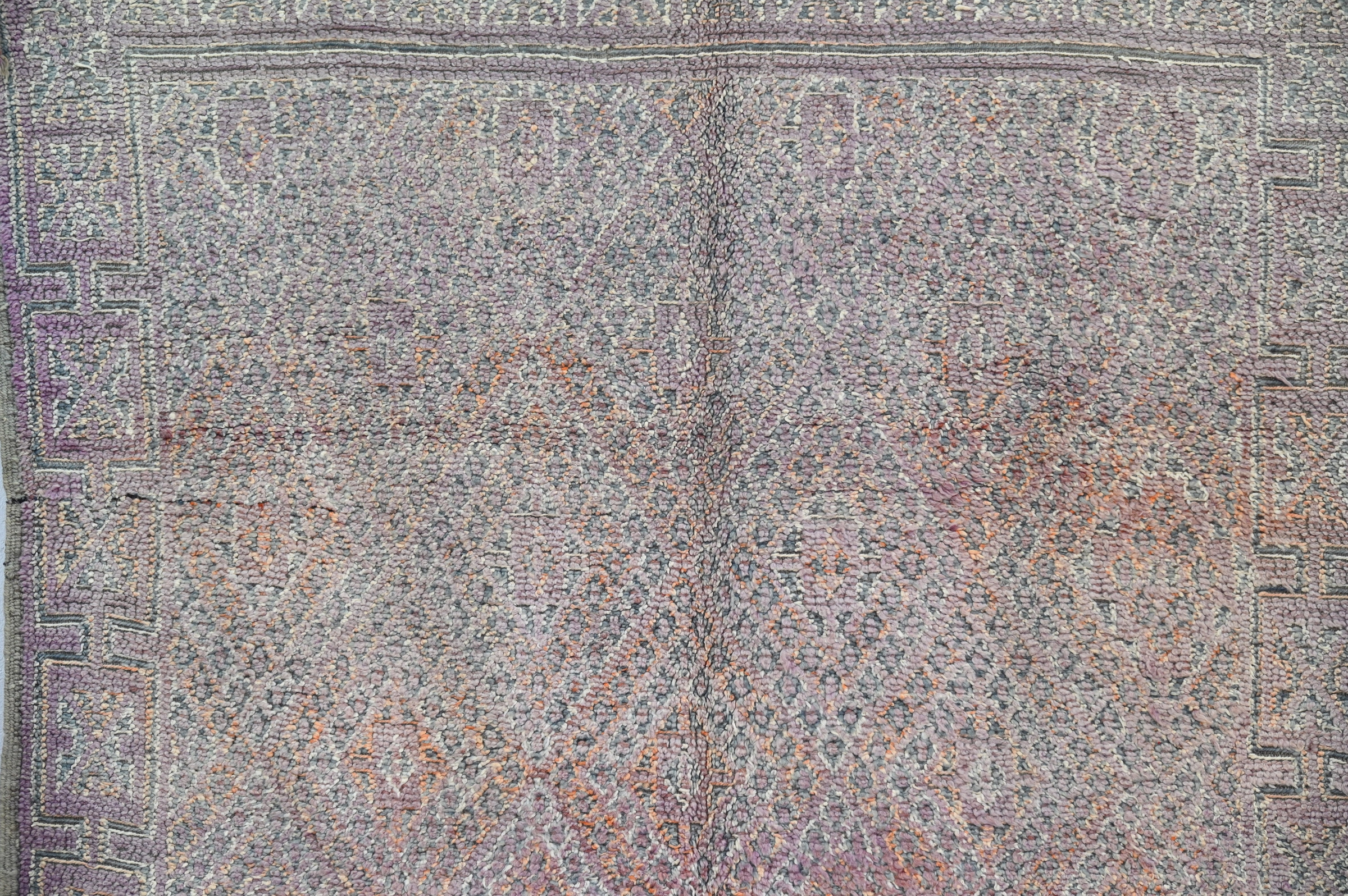 Measuring 320 × 205 cm, the substantial vintage rug from Morocco's Atlas Mountains demonstrates enduring craft quality through authentic age. The generous proportions suit living rooms and bedrooms, while the time-softened palette integrates seamlessly with serene contemporary interiors. The complex all-over patterning delivers subtle visual depth within refined neutral aesthetic. Free international delivery.