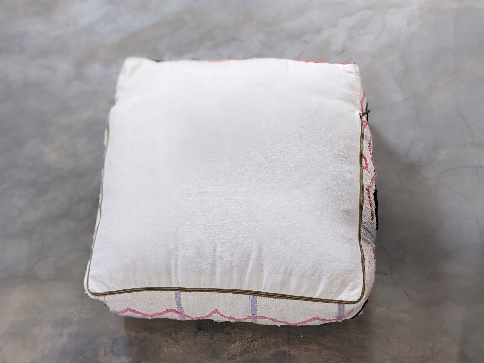 Måler 60 × 60 cm, denne Atlasbjerg-puf fungerer som alsidigt siddested, fodskammel eller accentstykke inden for lagdelte interiører. Berber-håndværkere anvender traditionelle vævningsteknikker til at skabe den faste men behagelige struktur med hver side, der viser spontan farve-blokering. De kompakte proportioner passer til moderne liv, hvor fleksible møbler tilpasser sig skiftende rumlige behov. Et funktionelt tekstilobjekt, der leverer både komfort og kromatisk impact. Gratis international levering.
