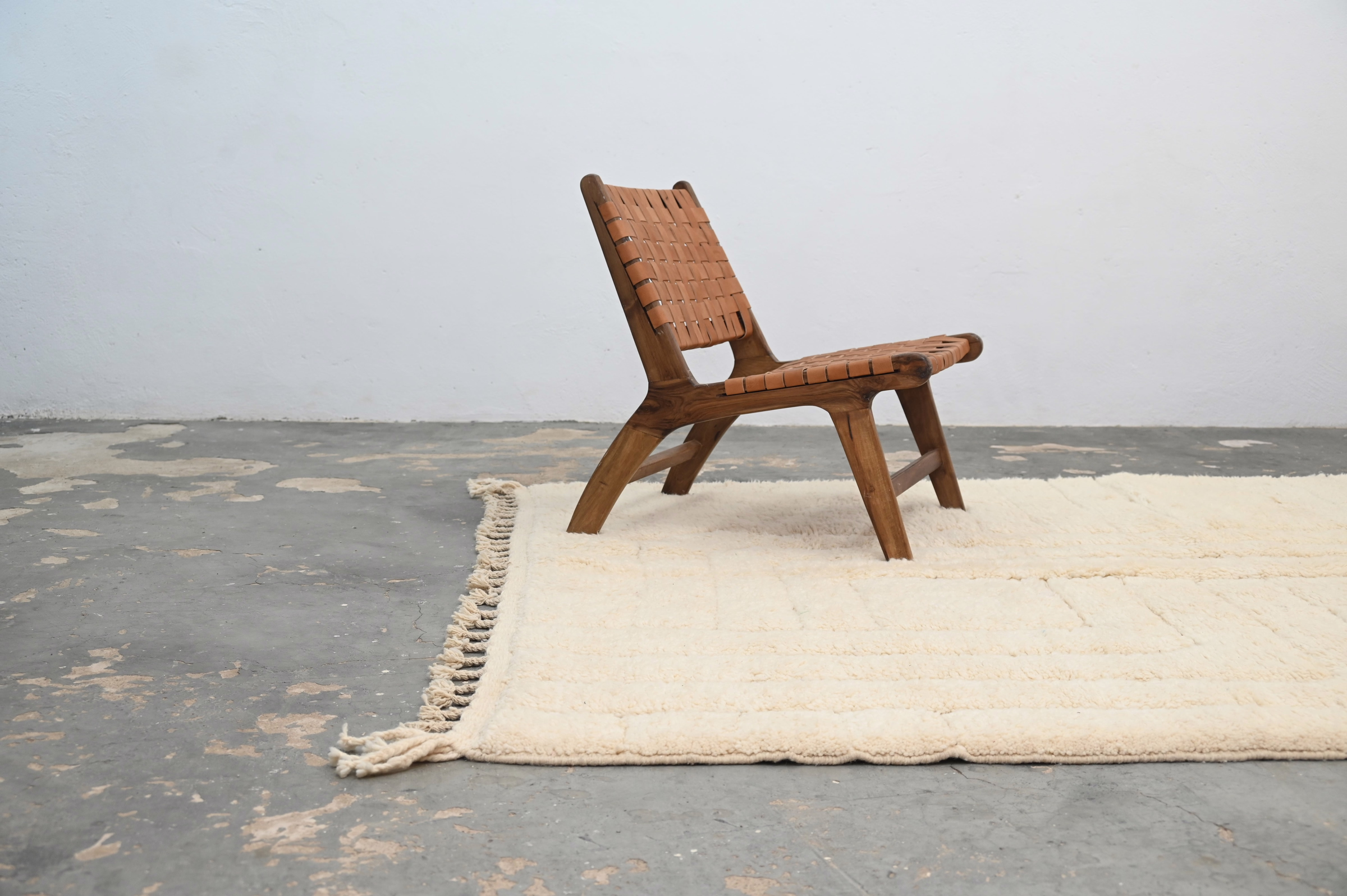 Measuring 300 × 210 cm, the substantial wool rug originates from the Middle Atlas Mountains where Beni Ouarain tribes balance traditional motifs with restrained expression. The generous proportions anchor living rooms and bedrooms with grounded presence, while the monochromatic palette ensures versatility across interior styles. The luxurious pile height delivers exceptional warmth and acoustic softening. Free international delivery.
