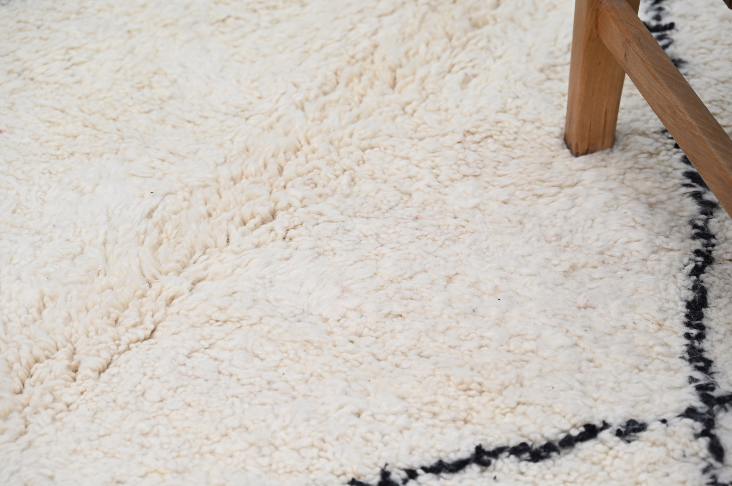 Measuring 311 × 207 cm, this substantial wool rug originates from the Middle Atlas Mountains where Beni Ouarain tribes have refined thick-pile weaving techniques over generations. The generous proportions anchor primary living spaces and bedrooms with grounded presence, while the monochromatic palette ensures versatility across interior styles. The luxurious pile delivers exceptional warmth and acoustic softening. Free international delivery.