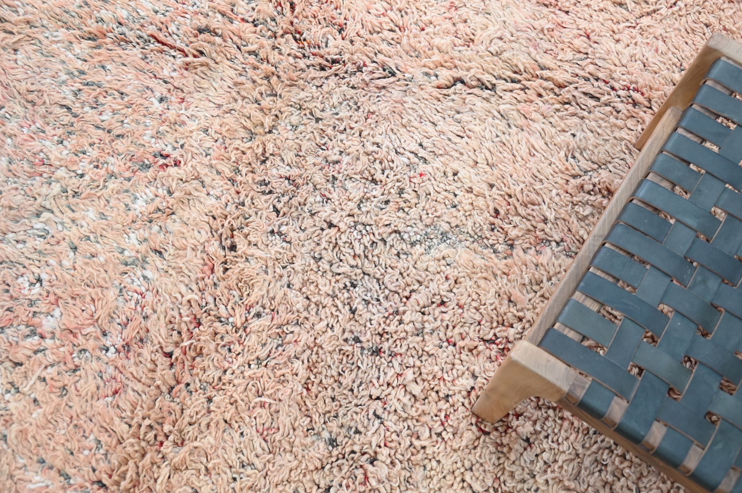 Measuring 280 × 220 cm, the substantial vintage rug from Morocco's Atlas Mountains demonstrates enduring craft quality through authentic age. The generous square proportions suit living rooms and bedrooms, while the vibrant coral hue energizes bohemian and eclectic interiors. The subtle patterning delivers contemplative visual interest within bold chromatic statement. Free international delivery.