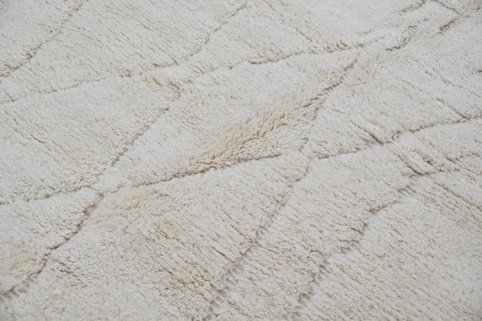 Measuring 300 × 208 cm, the substantial wool rug originates from the Middle Atlas Mountains where Beni Ouarain tribes balance traditional motifs with spontaneous expression. The generous proportions anchor living rooms and bedrooms with grounded presence, while the monochromatic palette integrates seamlessly with varied interior styles. The exceptional pile height delivers warmth and acoustic softening. Free international delivery.
