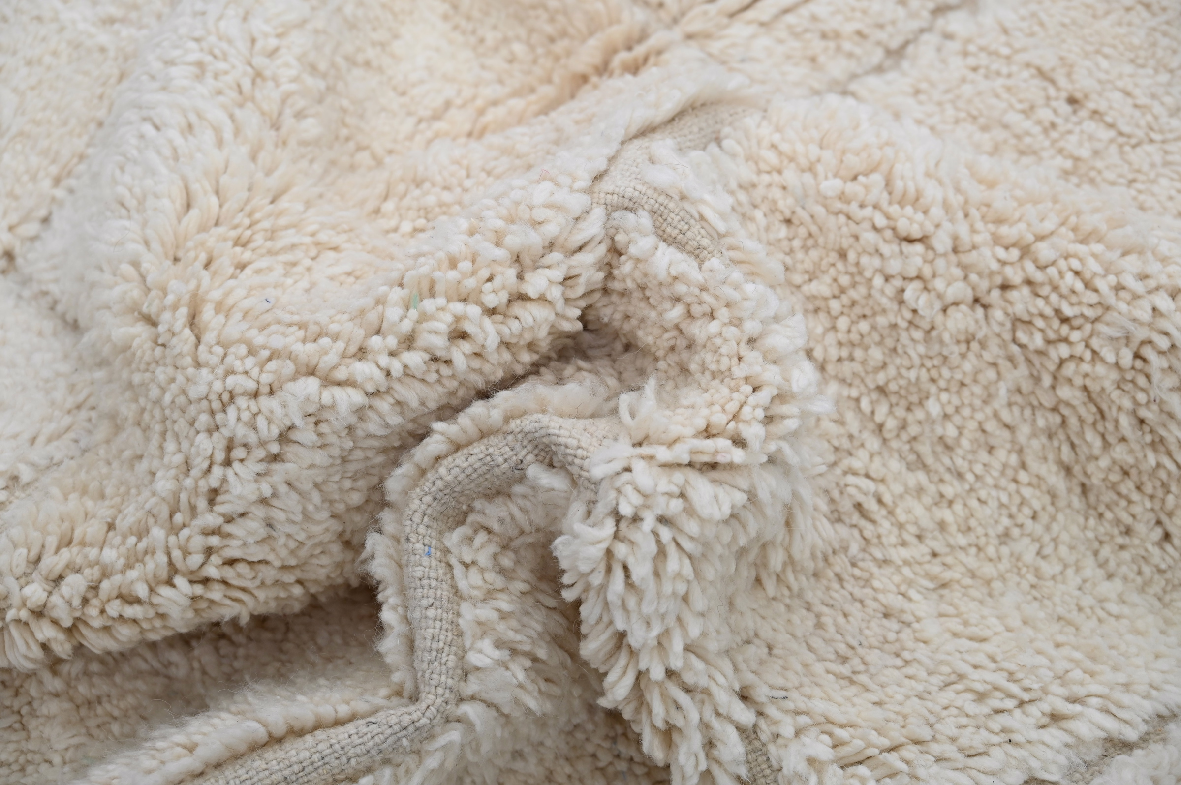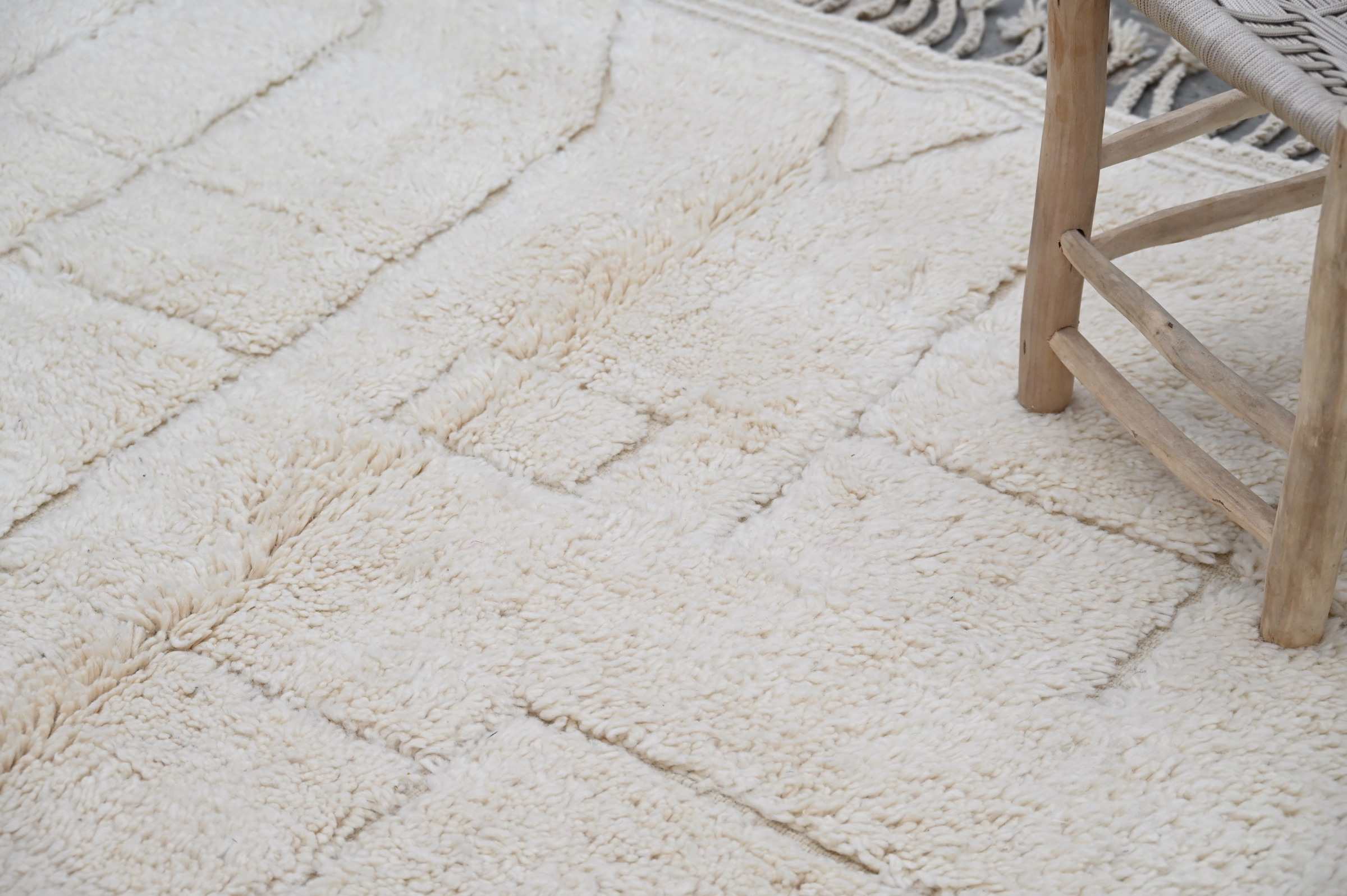 Met afmetingen van 250 × 170 cm stamt dit maagdelijke wollen tapijt uit het Midden-Atlasgebergte waar Beni Ouarain-stammen dikke-pool weven geperfectioneerd hebben voor warmte en comfort. De middelgrote-grote proporties passen bij slaapkamers en intieme zithoeken, terwijl het neutrale palet naadloos integreert met gevarieerde interieurstijlen. De substantiële wollen constructie biedt akoestische verzachting en luxe onder de voeten dat minimalistische ruimtes transformeert tot tactiele heiligdommen. Gratis internationale levering.