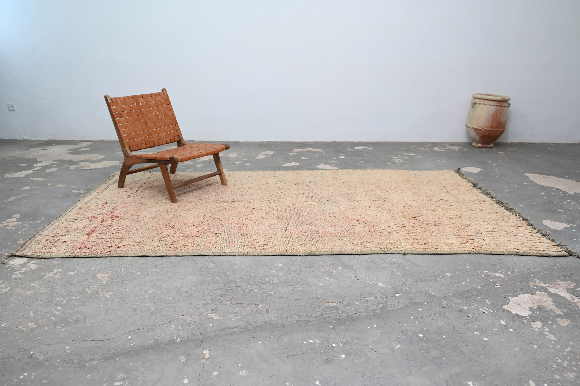 Met afmetingen van 330 × 190 cm demonstreert dit substantiële maagdelijke wollen tapijt uit het Marokkaanse Atlasgebergte blijvende ambachtskwaliteit door authentieke leeftijd. De royale proporties passen bij woonkamers en slaapkamers, terwijl het door tijd verzachte palet naadloos integreert met serene hedendaagse interieurs. De etherische patronering biedt contemplatieve visuele diepte binnen verfijnde neutrale esthetiek. Gratis internationale levering.