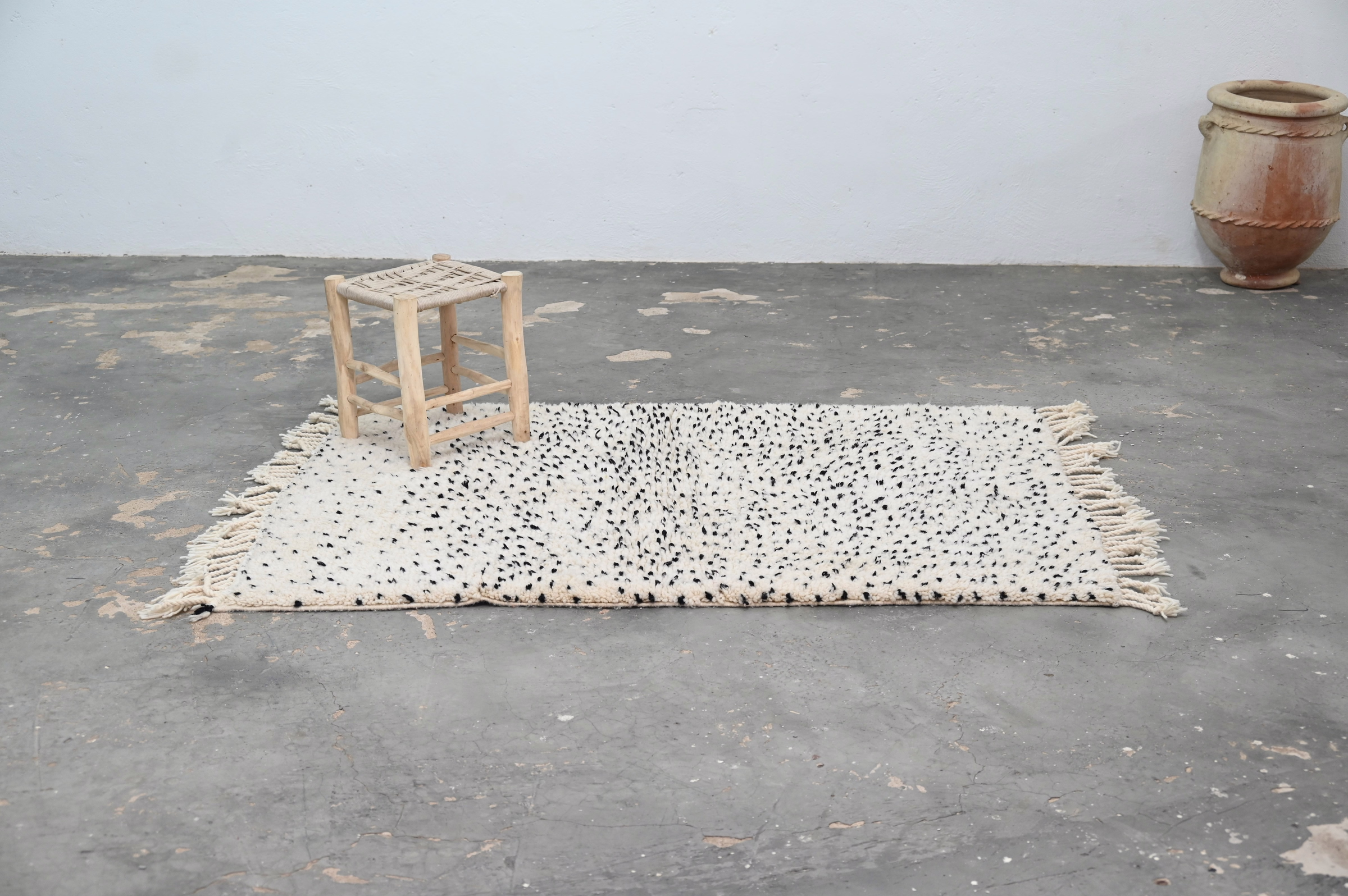 A textile of uncommon presence from the Azilal region of the Middle Atlas. Measuring 172 × 125 cm, this piece represents the intersection of ancestral technique and contemporary restraint—a piece for interiors that value substance over statement.