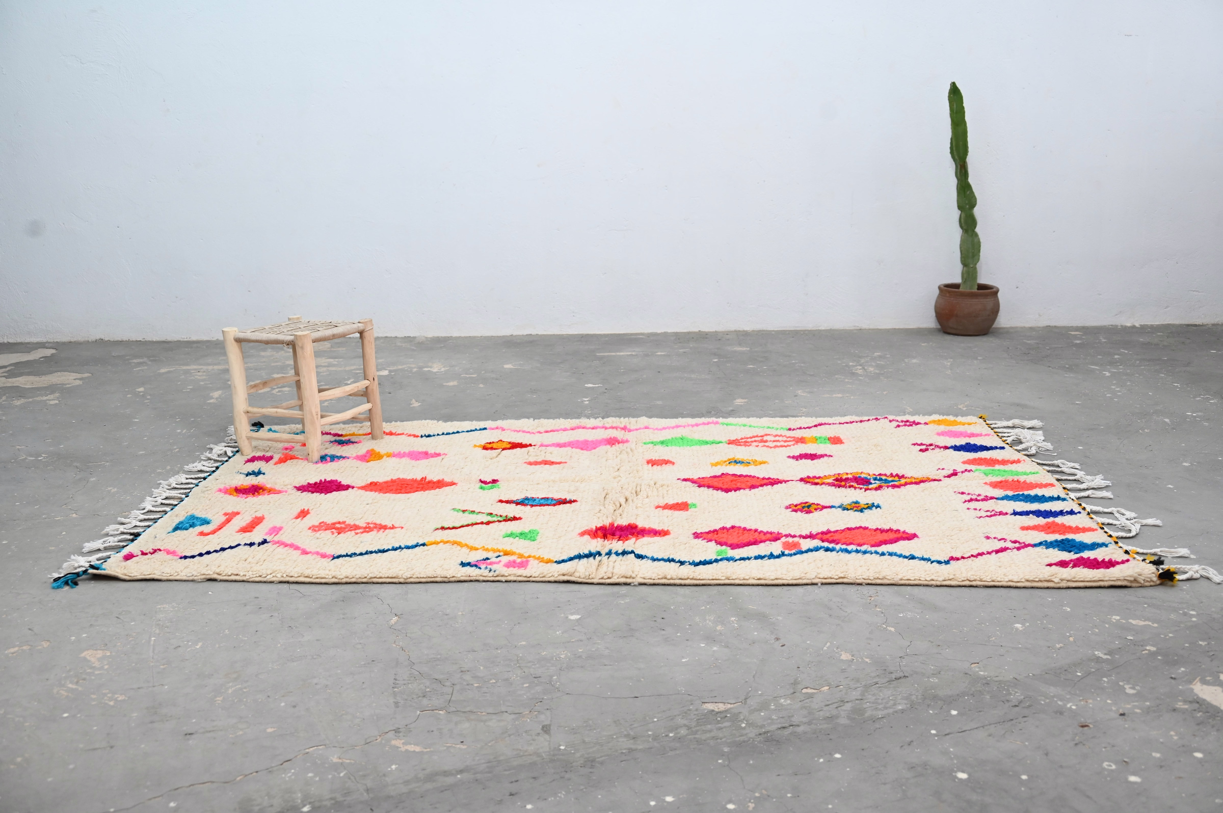From the Azilal region of the Middle Atlas comes this singular textile, woven without haste in the tradition of generations. Measuring 246 × 146 cm, this piece embodies the principle that meaningful objects require time, attention, and human intention.