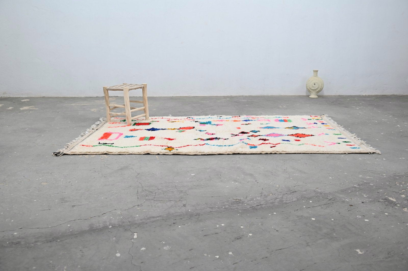From the Azilal region of the Middle Atlas comes this singular textile, woven without haste in the tradition of generations. Measuring 247 × 141 cm, this piece embodies the principle that meaningful objects require time, attention, and human intention.