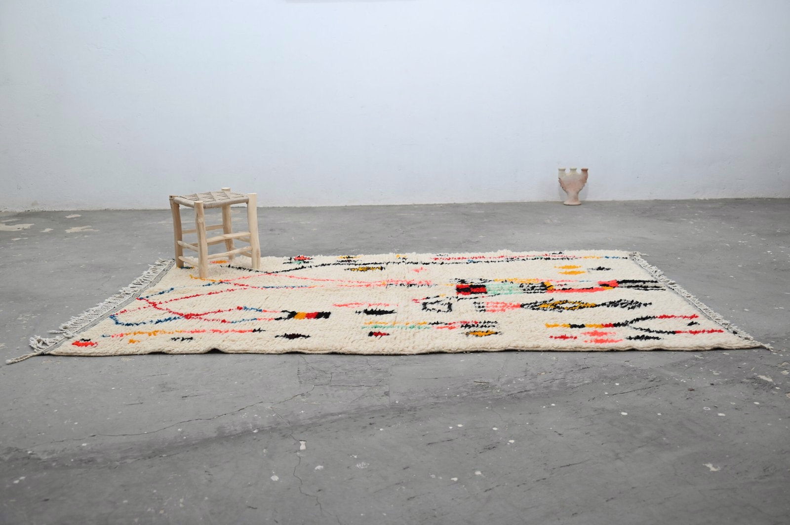 From the Azilal region of the Middle Atlas comes this singular textile, woven without haste in the tradition of generations. Measuring 250 × 154 cm, this piece embodies the principle that meaningful objects require time, attention, and human intention.