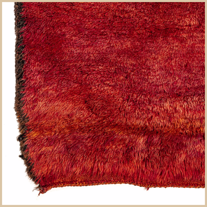 This textile emerges from generations of Atlas Mountain craft. Virgin wool, hand-spun and naturally dyed, takes form over weeks on traditional looms. No automation. No urgency. Only time and intention.
