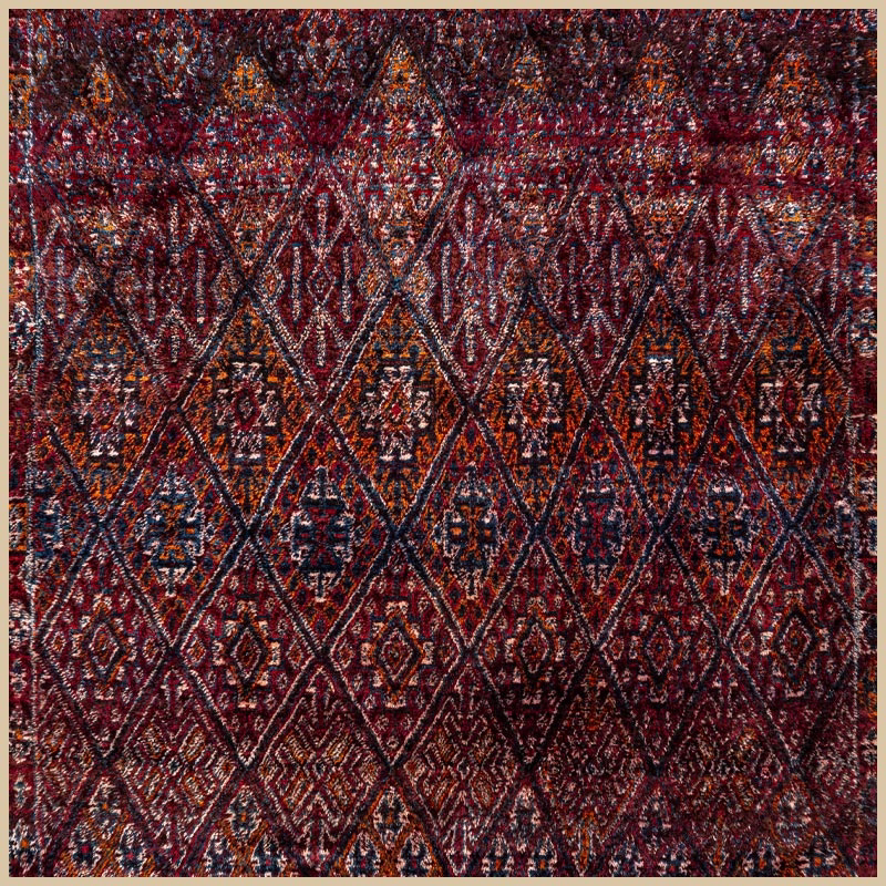 This textile emerges from generations of Atlas Mountain craft. Virgin wool, hand-spun and naturally dyed, takes form over weeks on traditional looms. No automation. No urgency. Only time and intention.