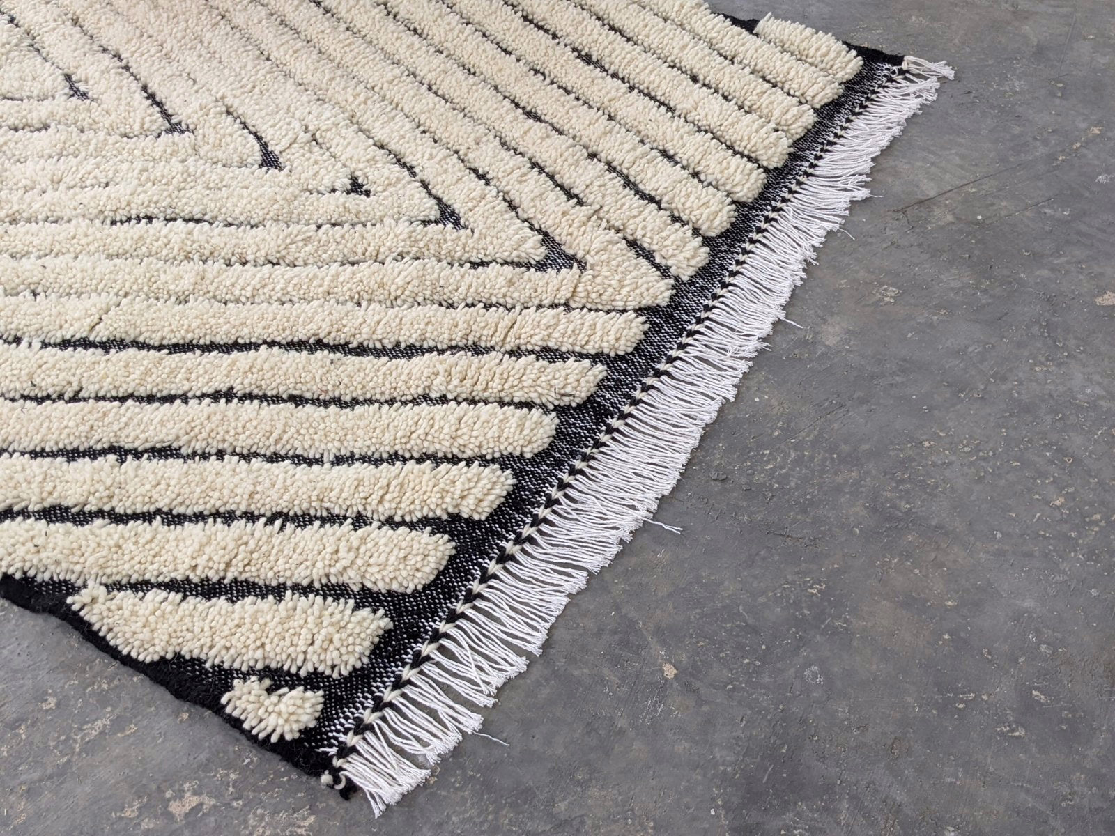 From the Atlas Mountains comes this singular textile, woven without haste in the tradition of generations. Measuring 245 × 146 cm, this piece embodies the principle that meaningful objects require time, attention, and human intention.