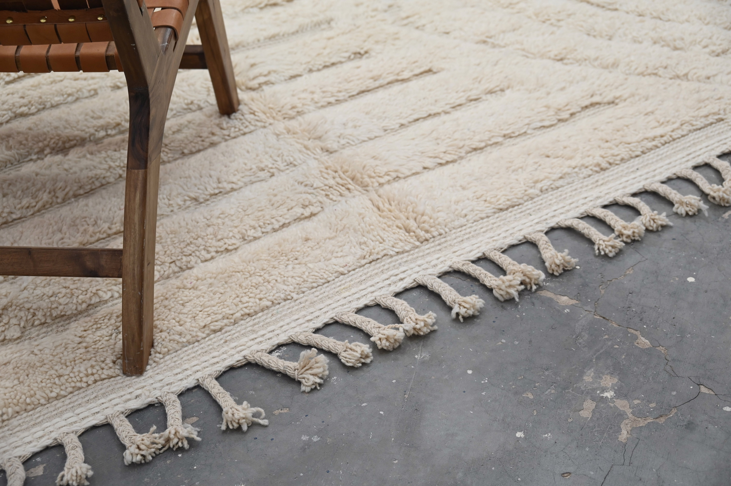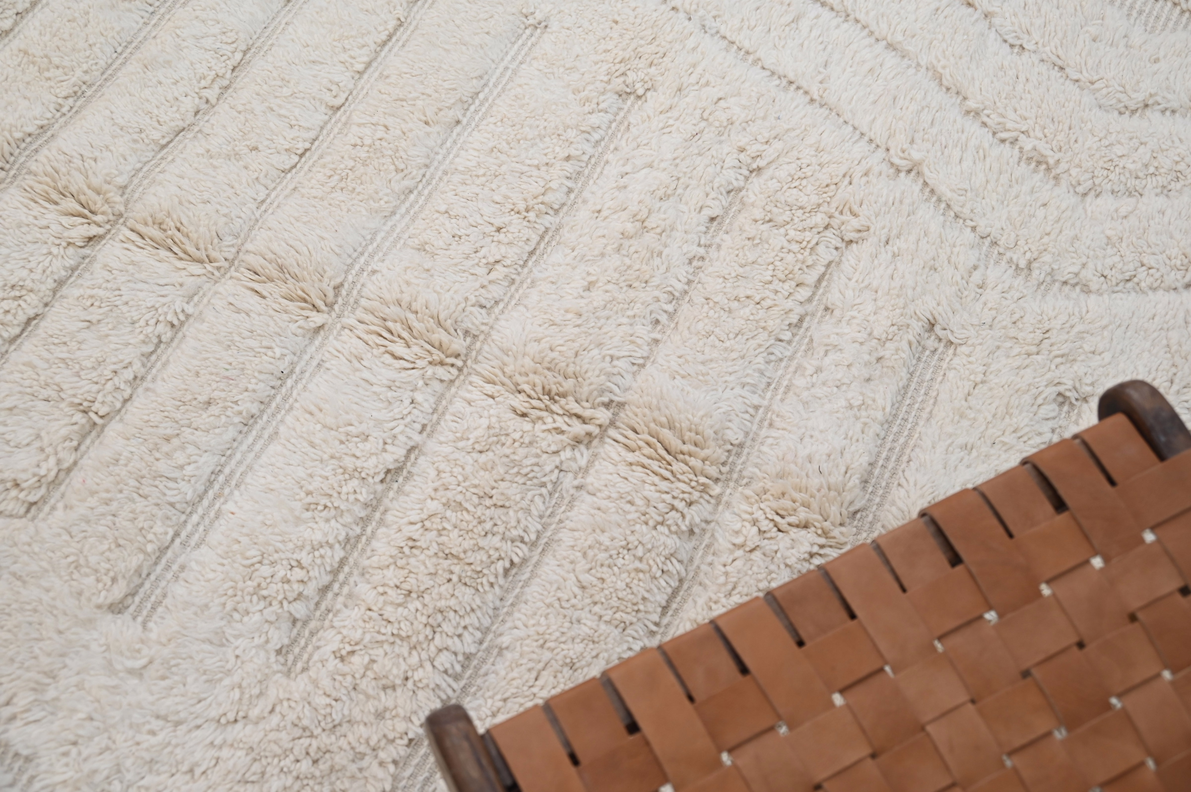 Handwoven in the Atlas Mountains, each piece emerges from a dialogue between material and maker. Measuring 300 × 200 cm, this piece carries the quiet rhythm of slow craftsmanship—wool prepared by hand, patterns emerging over weeks of focused work.