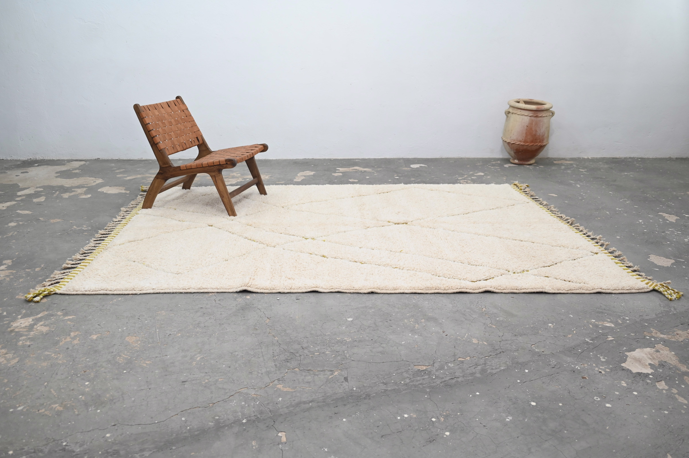 Handwoven in the Atlas Mountains, each piece emerges from a dialogue between material and maker. Measuring 310 × 210 cm, this piece carries the quiet rhythm of slow craftsmanship—wool prepared by hand, patterns emerging over weeks of focused work.