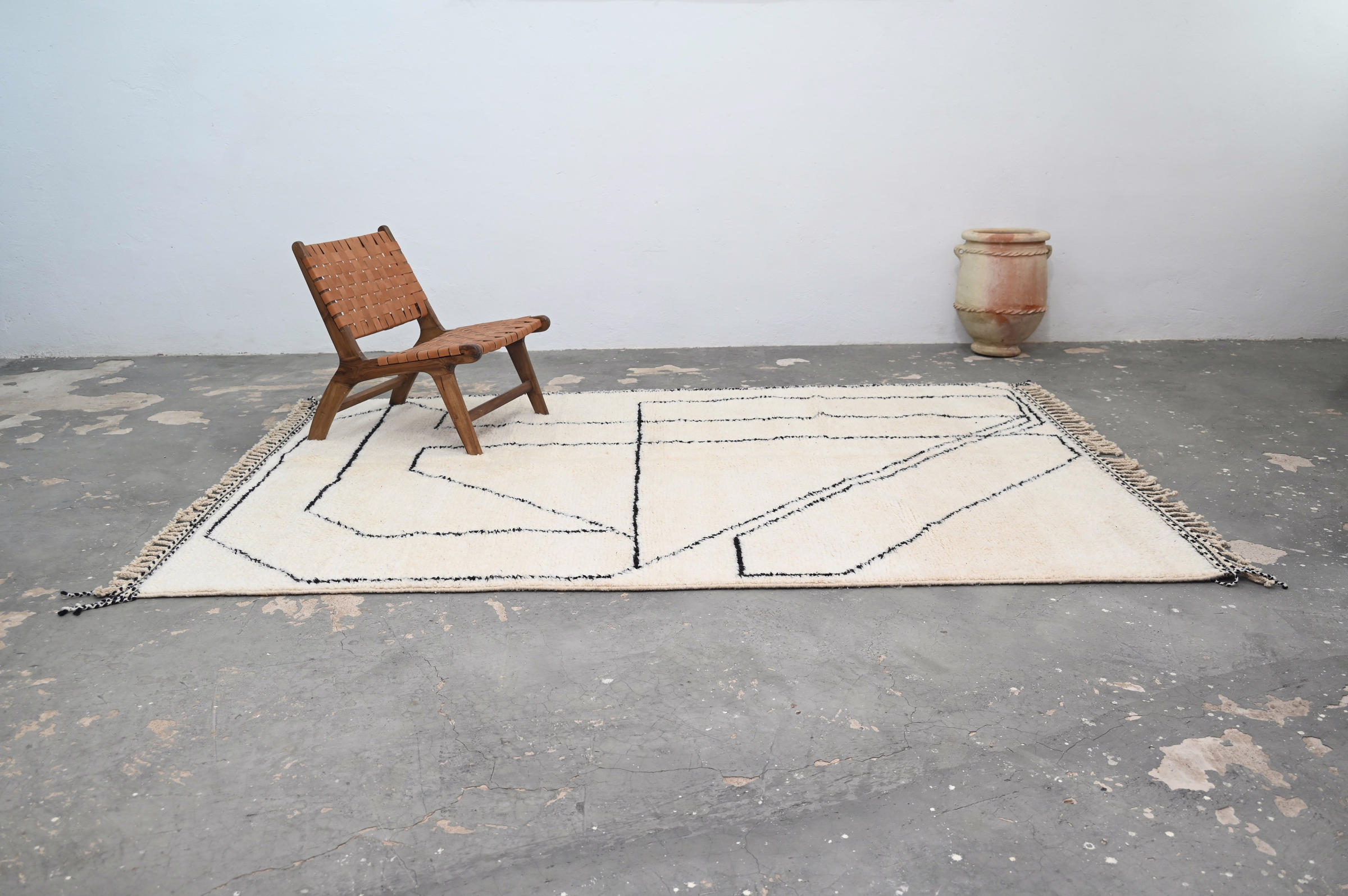 Handwoven in the Atlas Mountains, each piece emerges from a dialogue between material and maker. Measuring 310 × 210 cm, this piece carries the quiet rhythm of slow craftsmanship—wool prepared by hand, patterns emerging over weeks of focused work.