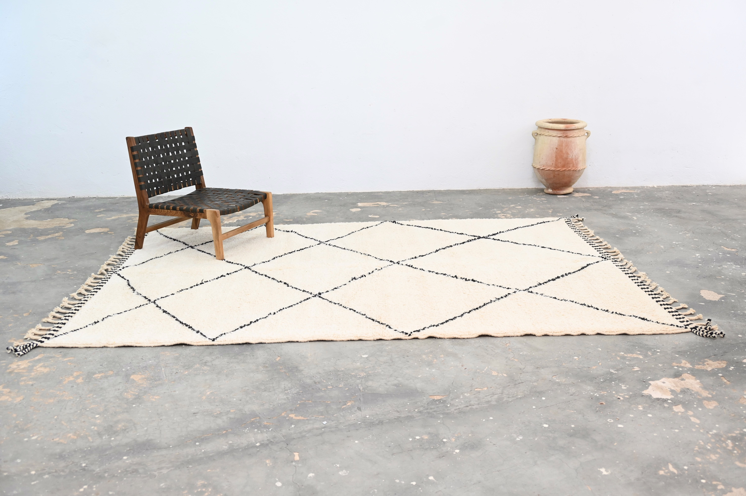 From the Atlas Mountains comes this singular textile, woven without haste in the tradition of generations. Measuring 310 × 214 cm, this piece embodies the principle that meaningful objects require time, attention, and human intention.