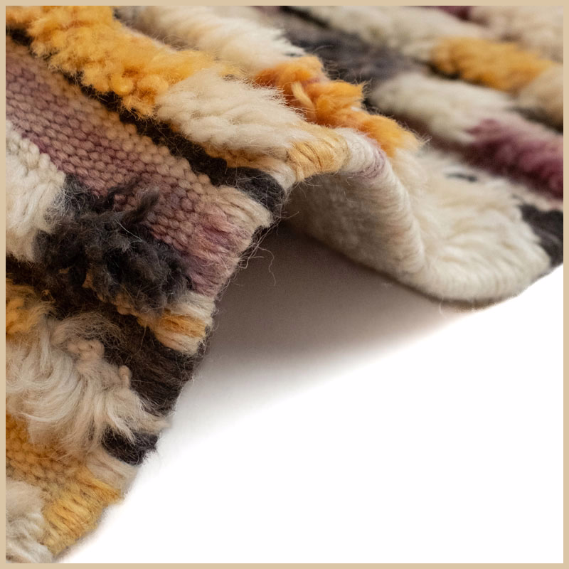 This textile emerges from generations of Atlas Mountain craft. Virgin wool, hand-spun and naturally dyed, takes form over weeks on traditional looms. No automation. No urgency. Only time and intention.