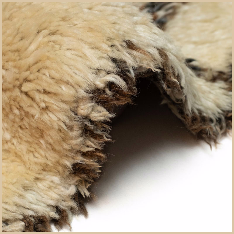This textile emerges from generations of Atlas Mountain craft. Virgin wool, hand-spun and naturally dyed, takes form over weeks on traditional looms. No automation. No urgency. Only time and intention.