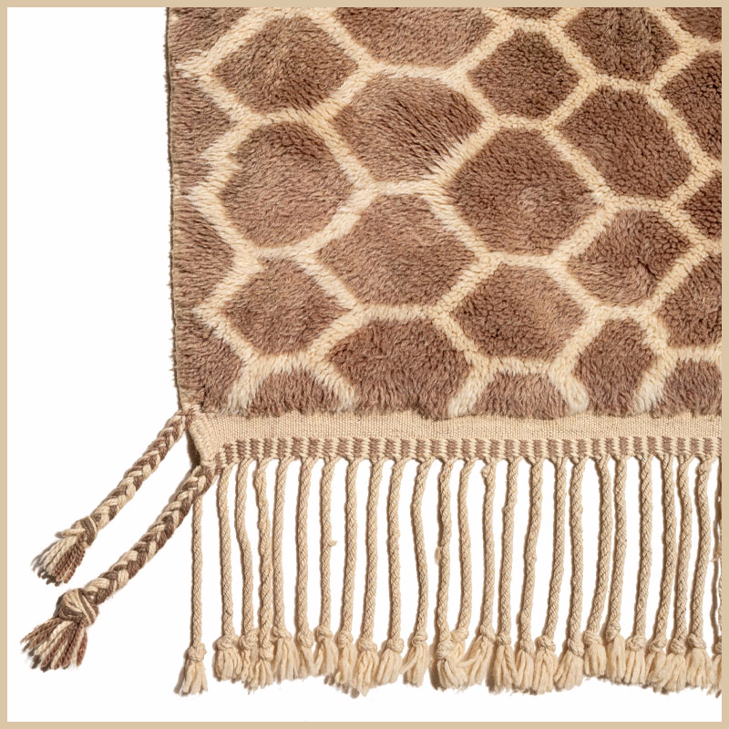This textile emerges from generations of Atlas Mountain craft. Virgin wool, hand-spun and naturally dyed, takes form over weeks on traditional looms. No automation. No urgency. Only time and intention.