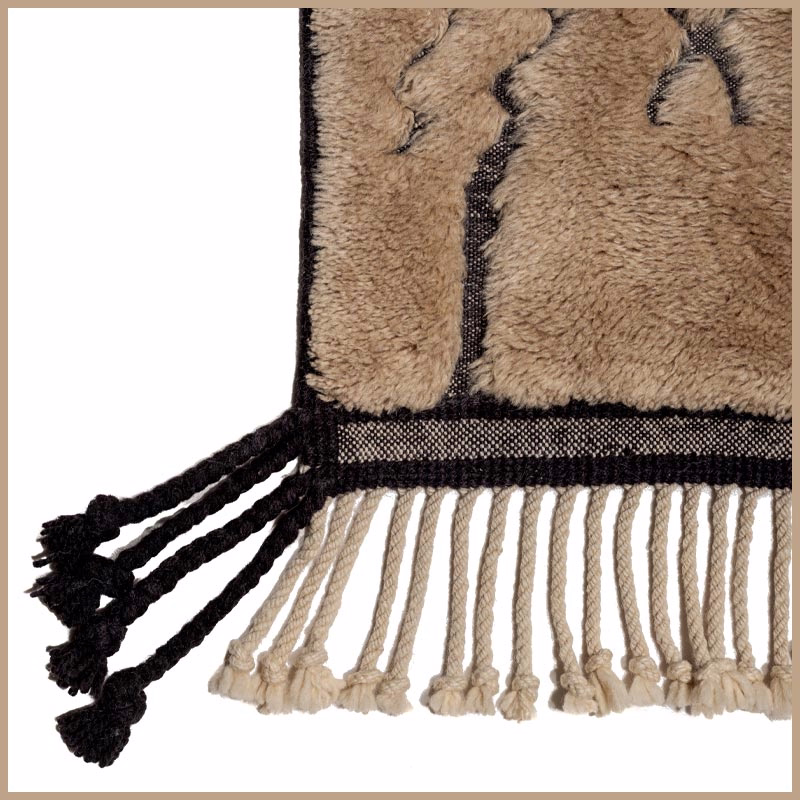This textile emerges from generations of Atlas Mountain craft. Virgin wool, hand-spun and naturally dyed, takes form over weeks on traditional looms. No automation. No urgency. Only time and intention.