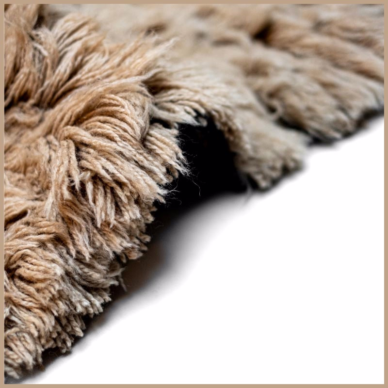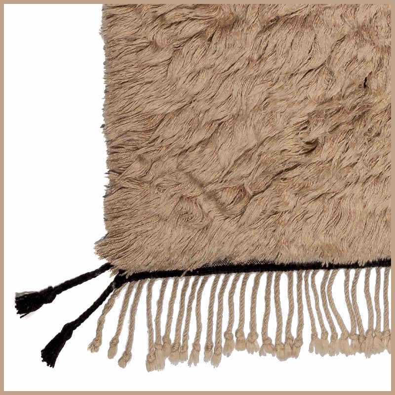 This textile emerges from generations of Atlas Mountain craft. Virgin wool, hand-spun and naturally dyed, takes form over weeks on traditional looms. No automation. No urgency. Only time and intention.