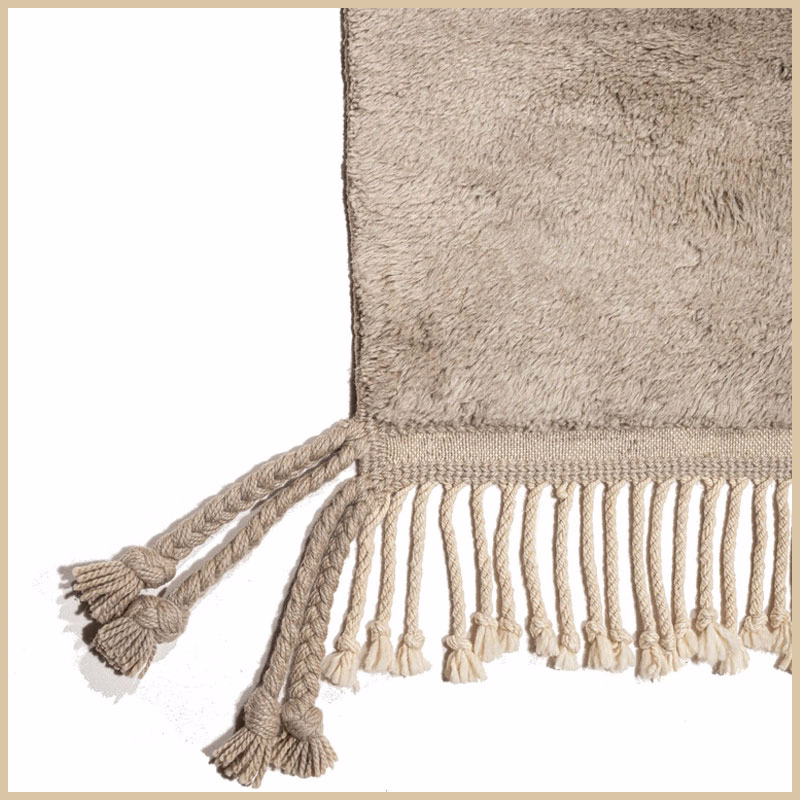 This textile emerges from generations of Atlas Mountain craft. Virgin wool, hand-spun and naturally dyed, takes form over weeks on traditional looms. No automation. No urgency. Only time and intention.
