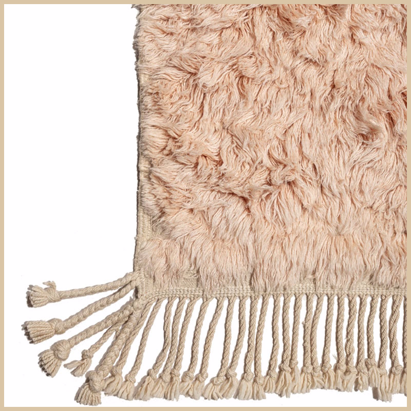 This textile emerges from generations of Atlas Mountain craft. Virgin wool, hand-spun and naturally dyed, takes form over weeks on traditional looms. No automation. No urgency. Only time and intention.