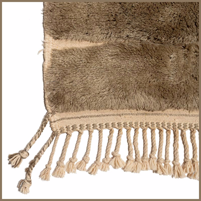This textile emerges from generations of Atlas Mountain craft. Virgin wool, hand-spun and naturally dyed, takes form over weeks on traditional looms. No automation. No urgency. Only time and intention.