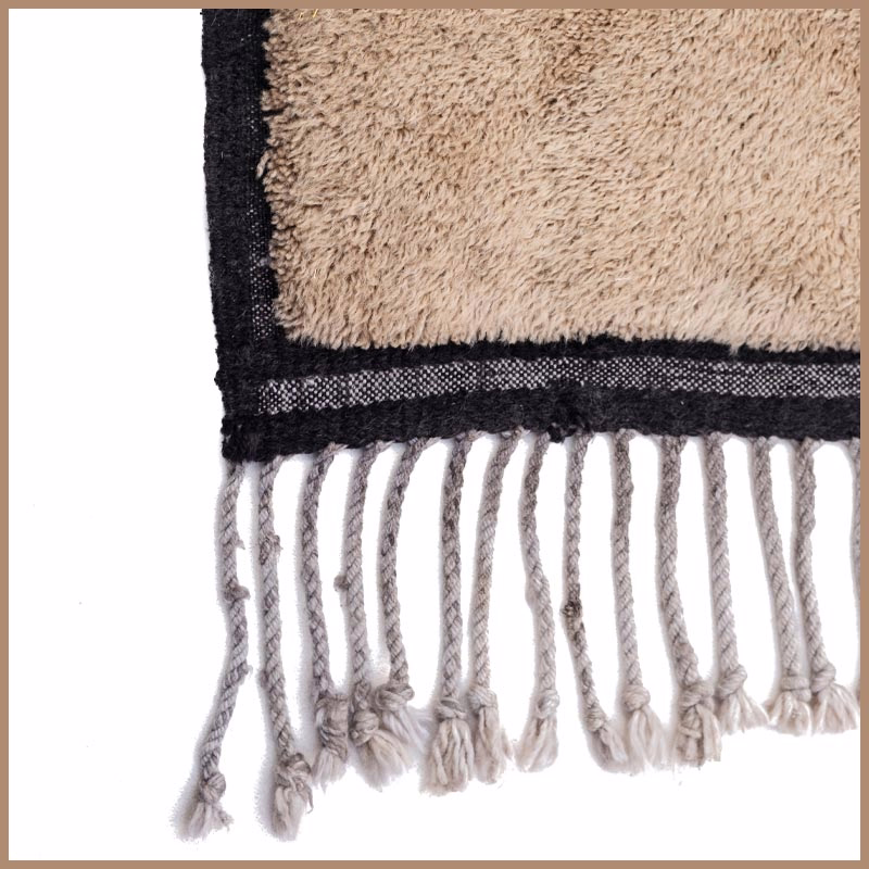 This textile emerges from generations of Atlas Mountain craft. Virgin wool, hand-spun and naturally dyed, takes form over weeks on traditional looms. No automation. No urgency. Only time and intention.