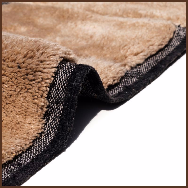 This textile emerges from generations of Atlas Mountain craft. Virgin wool, hand-spun and naturally dyed, takes form over weeks on traditional looms. No automation. No urgency. Only time and intention.