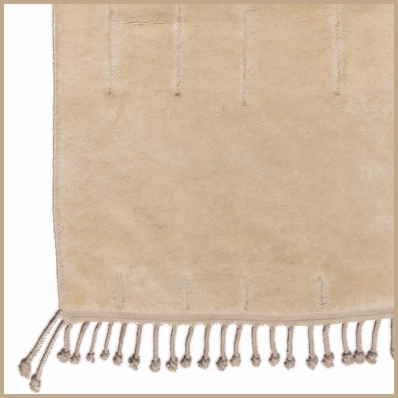 This textile emerges from generations of Atlas Mountain craft. Virgin wool, hand-spun and naturally dyed, takes form over weeks on traditional looms. No automation. No urgency. Only time and intention.