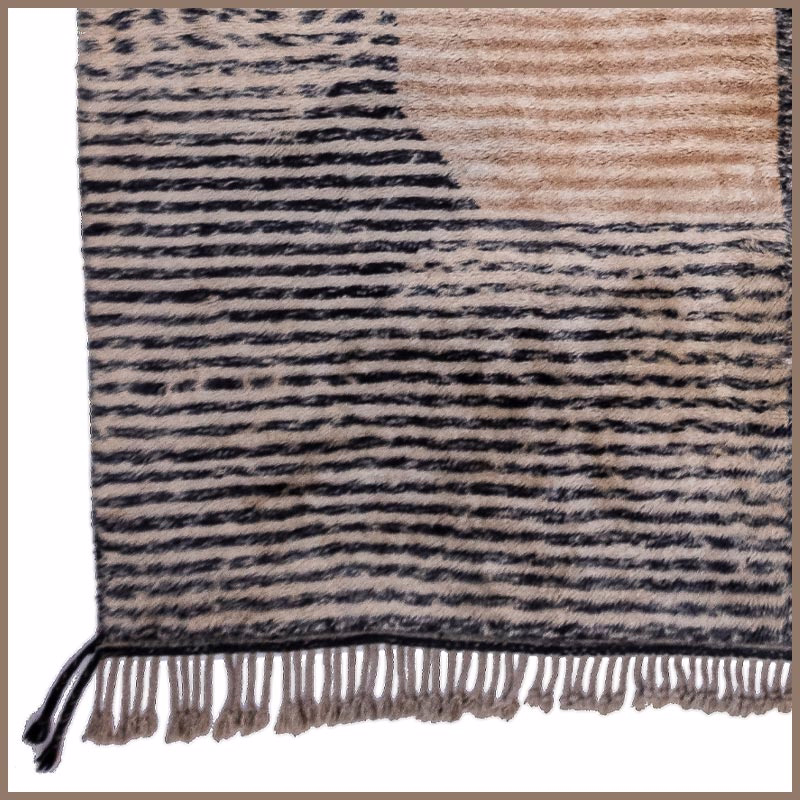 This textile emerges from generations of Atlas Mountain craft. Virgin wool, hand-spun and naturally dyed, takes form over weeks on traditional looms. No automation. No urgency. Only time and intention.