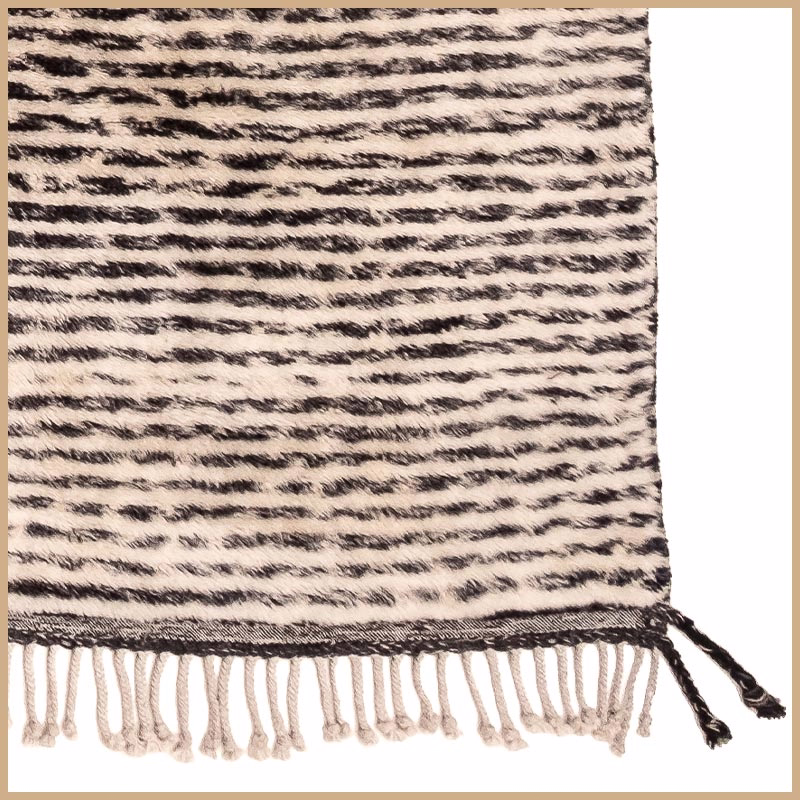 This textile emerges from generations of Atlas Mountain craft. Virgin wool, hand-spun and naturally dyed, takes form over weeks on traditional looms. No automation. No urgency. Only time and intention.
