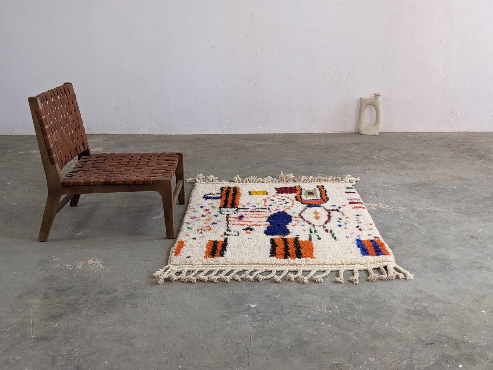 Handwoven in the Azilal region of the Middle Atlas, each piece emerges from a dialogue between material and maker. Measuring 138 × 107 cm, this piece carries the quiet rhythm of slow craftsmanship—wool prepared by hand, patterns emerging over weeks of focused work.