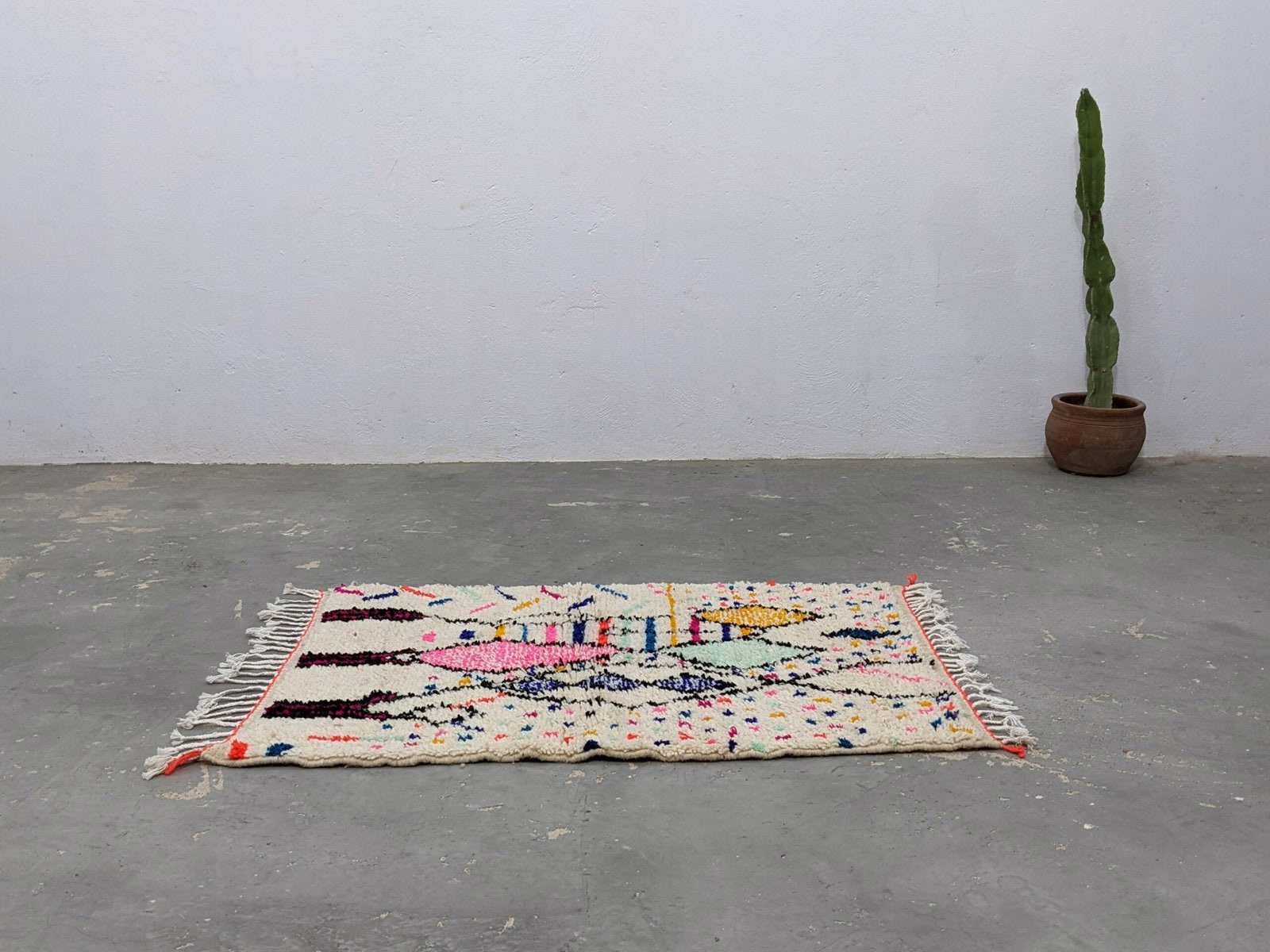 Handwoven in the Azilal region of the Middle Atlas, each piece emerges from a dialogue between material and maker. Measuring 138 × 97 cm, this piece carries the quiet rhythm of slow craftsmanship—wool prepared by hand, patterns emerging over weeks of focused work.