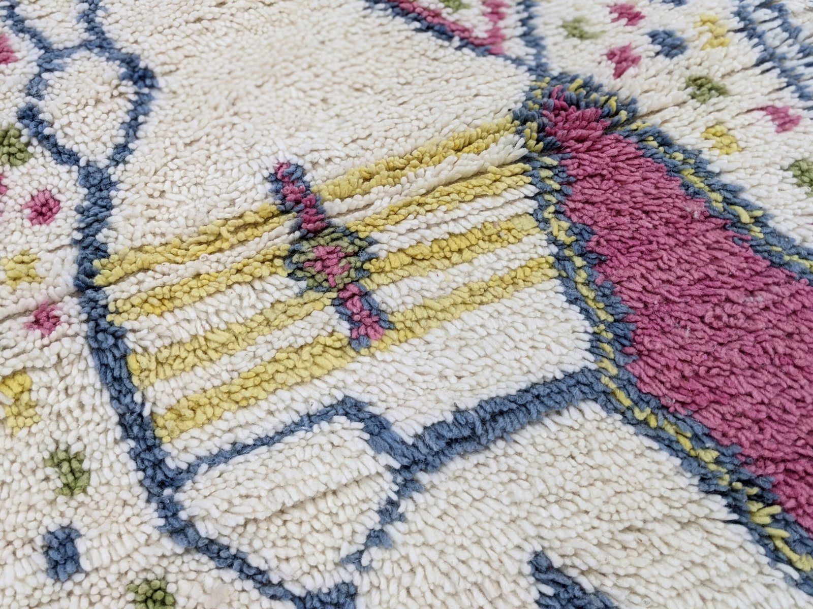Handwoven in the Azilal region of the Middle Atlas, each piece emerges from a dialogue between material and maker. Measuring 149 × 103 cm, this piece carries the quiet rhythm of slow craftsmanship—wool prepared by hand, patterns emerging over weeks of focused work.
