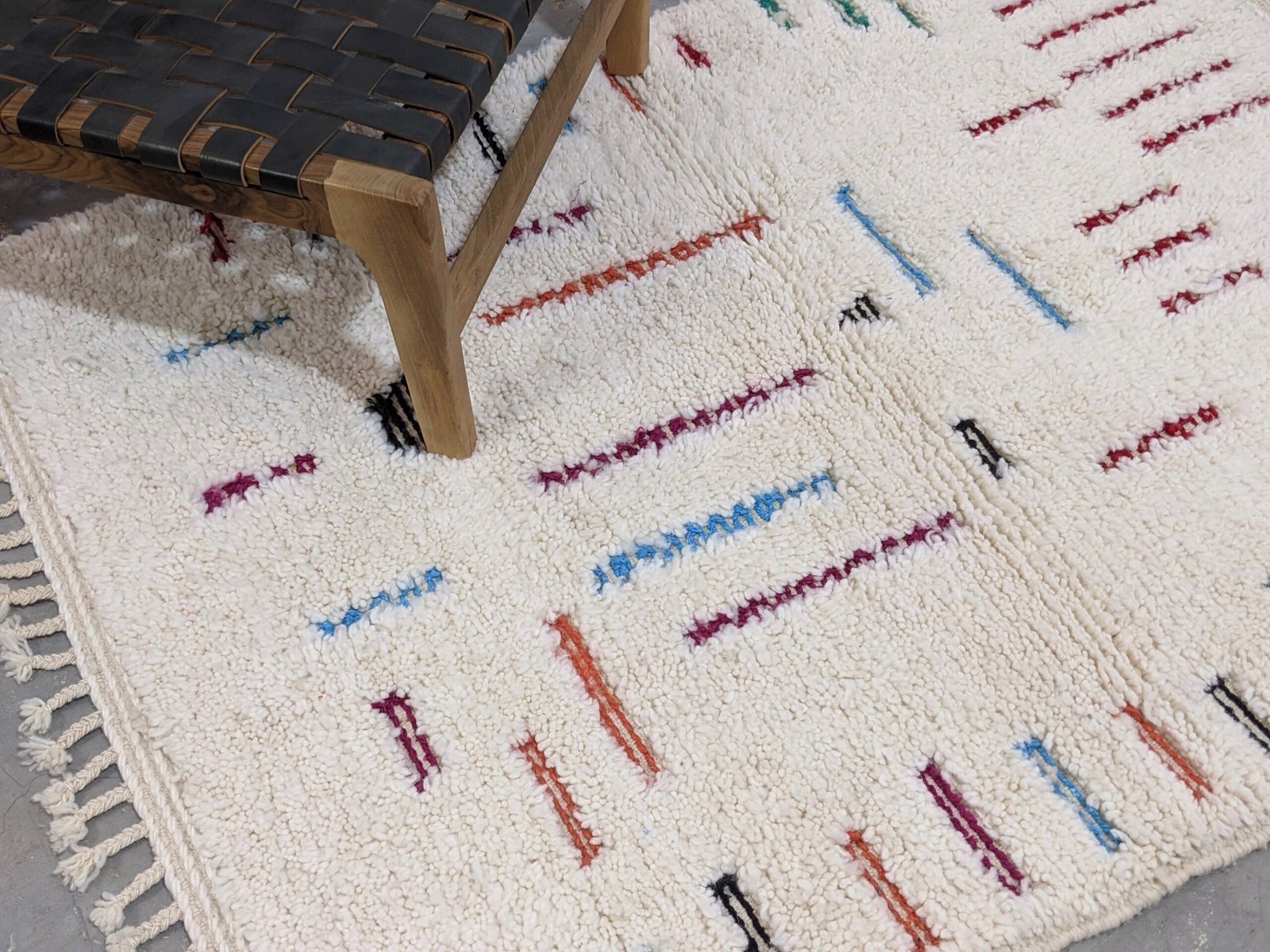 A textile of uncommon presence from the Azilal region of the Middle Atlas. Measuring 150 × 112 cm, this piece represents the intersection of ancestral technique and contemporary restraint—a piece for interiors that value substance over statement.
