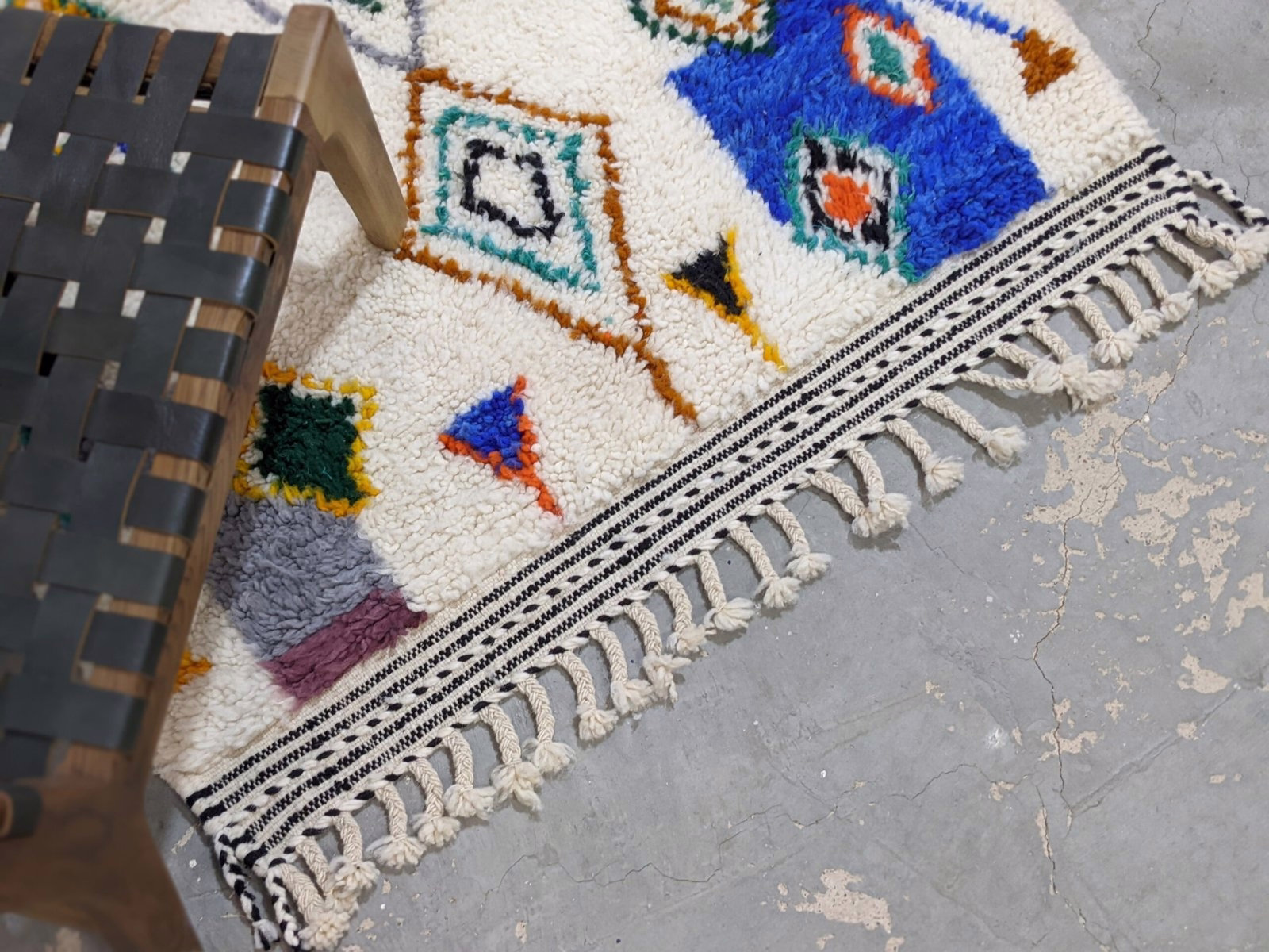 A textile of uncommon presence from the Azilal region of the Middle Atlas. Measuring 153 × 108 cm, this piece represents the intersection of ancestral technique and contemporary restraint—a piece for interiors that value substance over statement.
