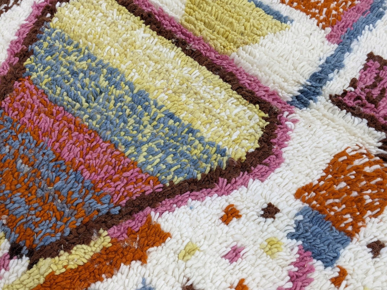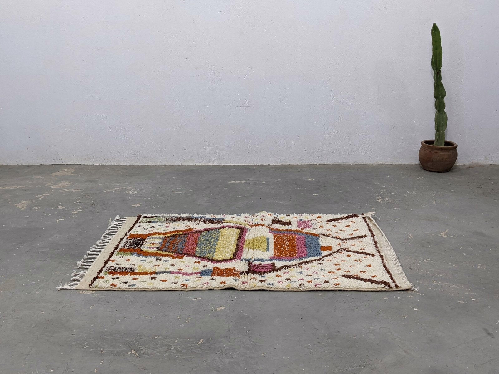 A textile of uncommon presence from the Azilal region of the Middle Atlas. Measuring 154 × 103 cm, this piece represents the intersection of ancestral technique and contemporary restraint—a piece for interiors that value substance over statement.