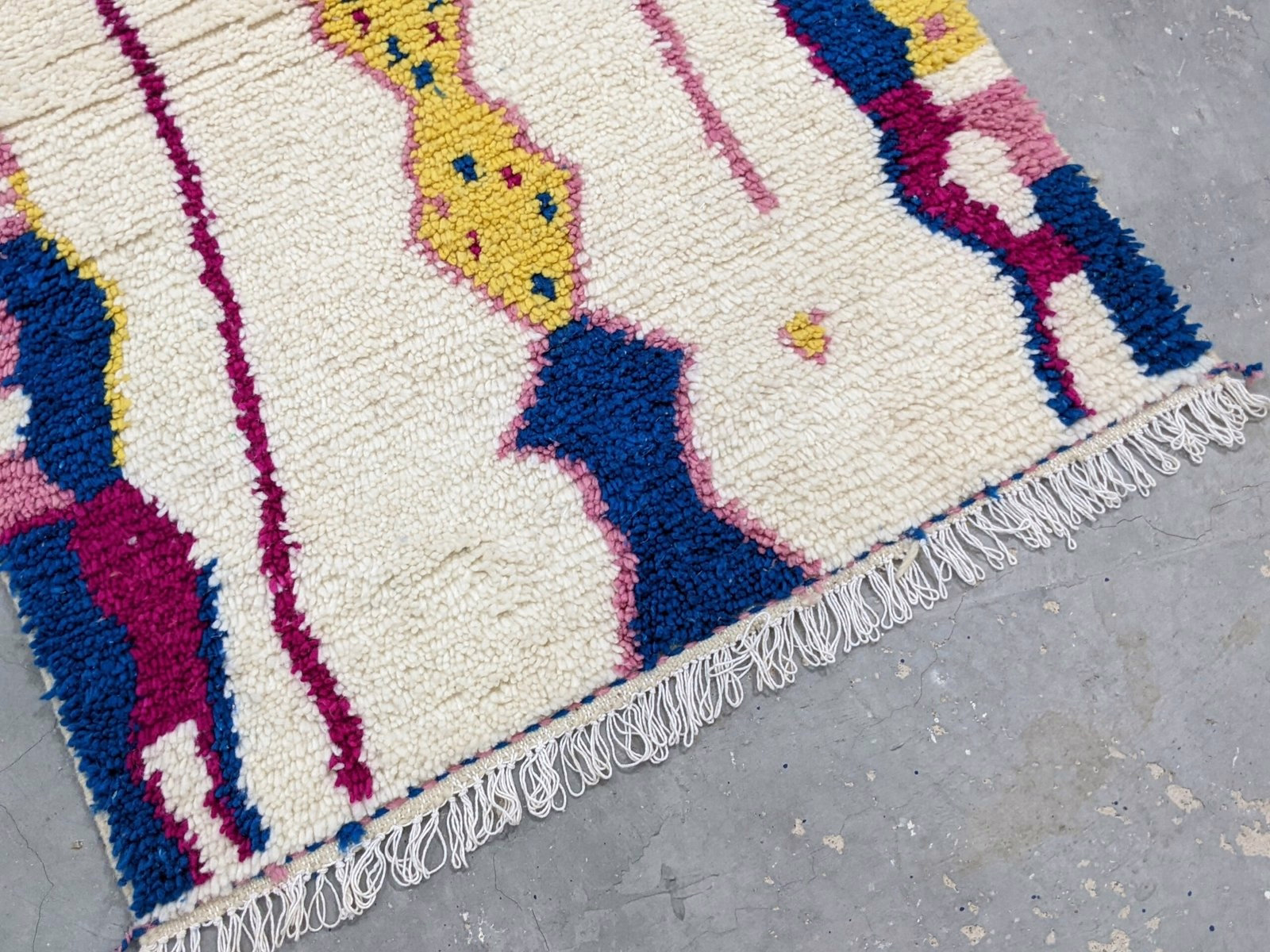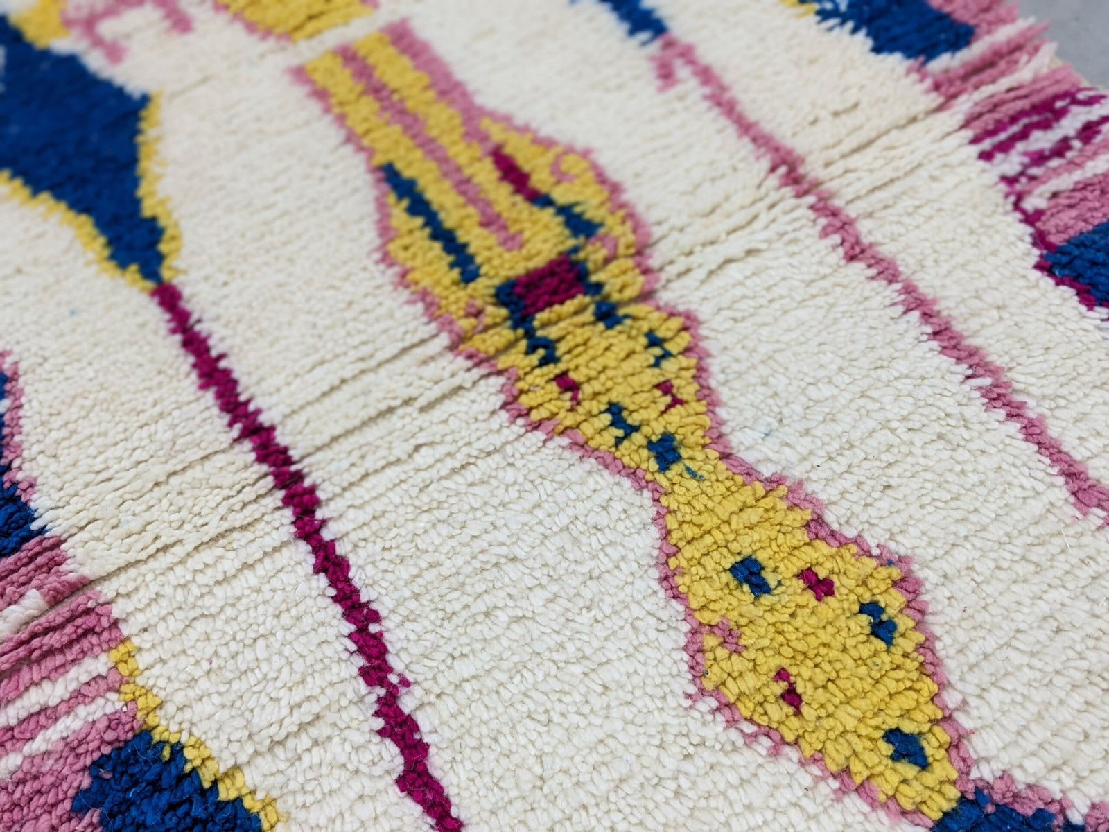 A textile of uncommon presence from the Azilal region of the Middle Atlas. Measuring 161 × 100 cm, this piece represents the intersection of ancestral technique and contemporary restraint—a piece for interiors that value substance over statement.