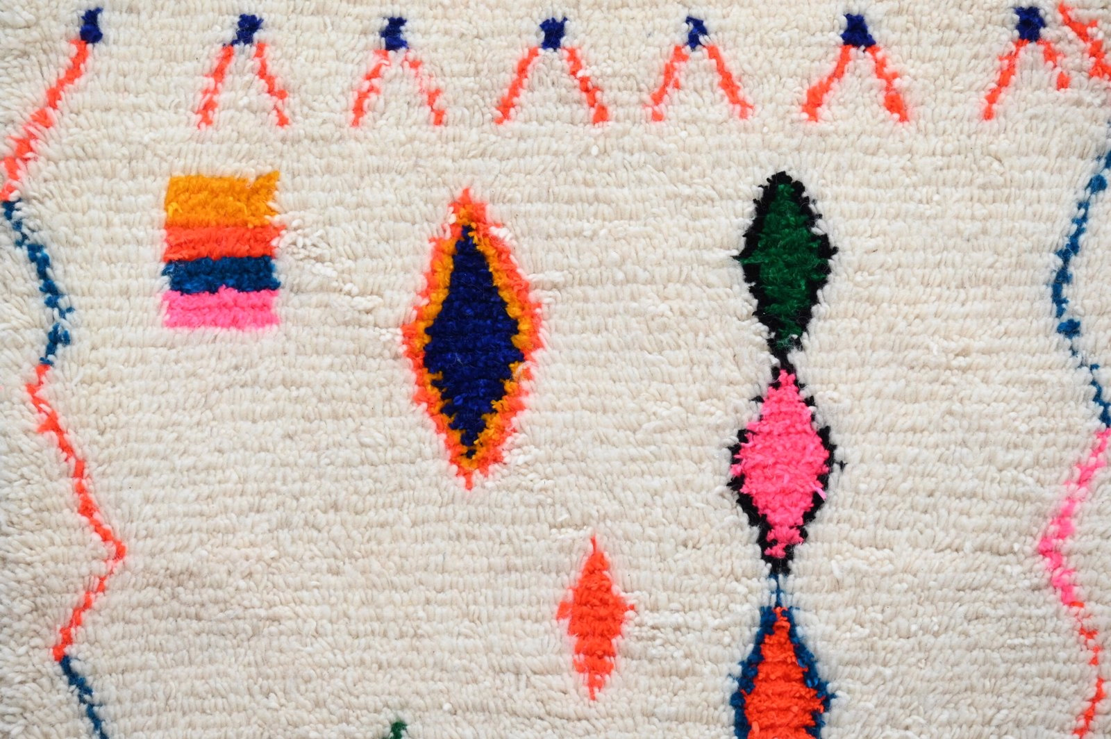 A textile of uncommon presence from the Azilal region of the Middle Atlas. Measuring 164 × 91 cm, this piece represents the intersection of ancestral technique and contemporary restraint—a piece for interiors that value substance over statement.