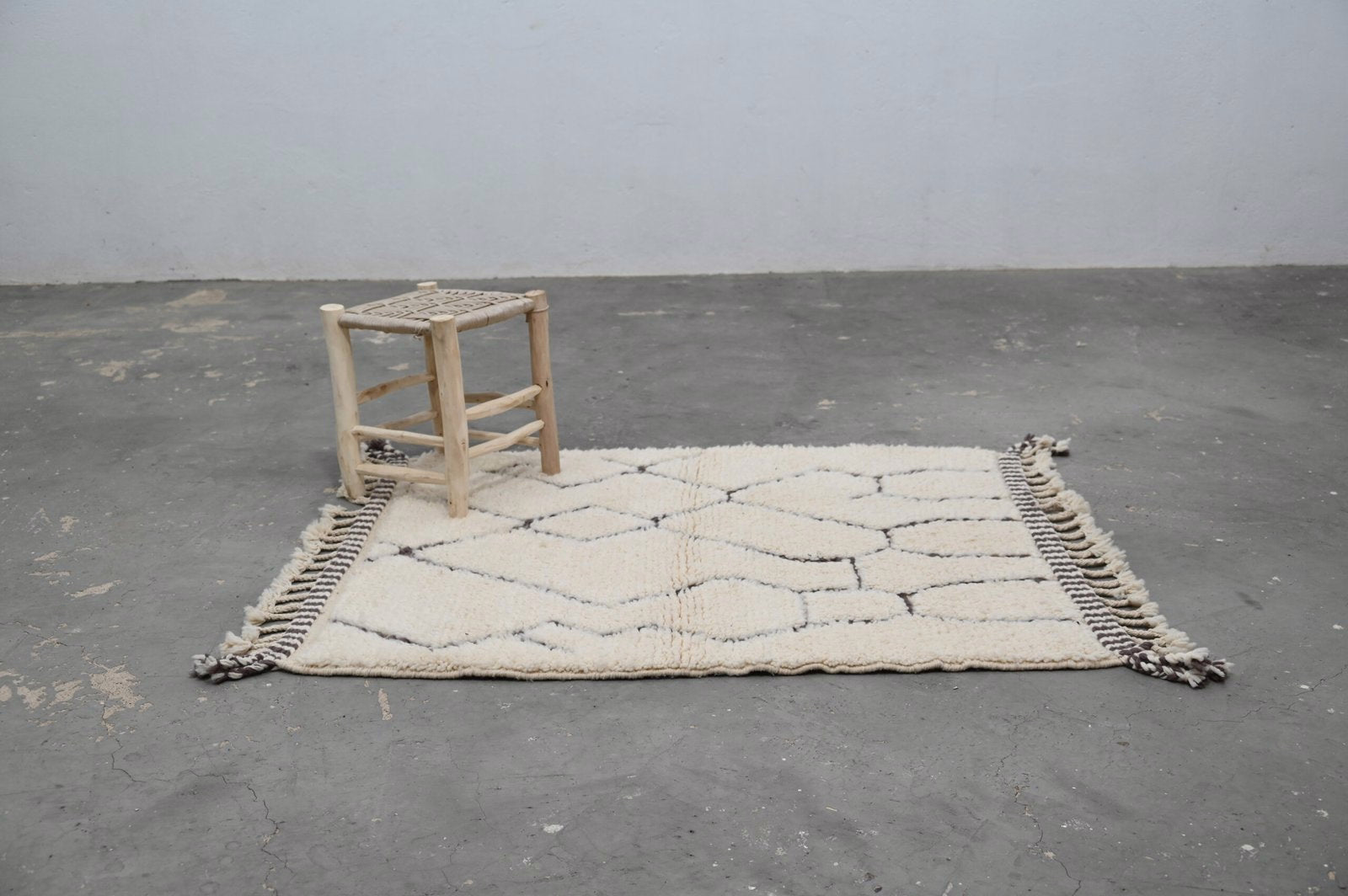 A textile of uncommon presence from the Atlas Mountains. Measuring 140 × 108 cm, this piece represents the intersection of ancestral technique and contemporary restraint—a piece for interiors that value substance over statement.