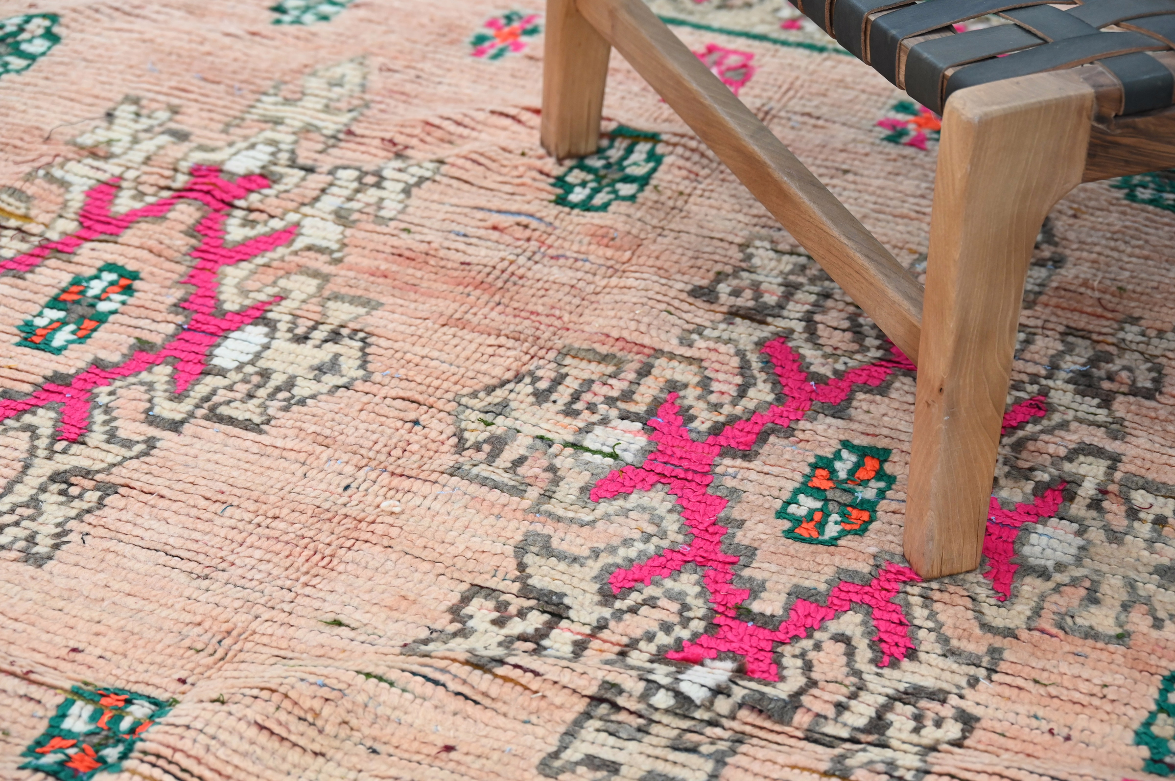 Handwoven in the Atlas Mountains, each piece emerges from a dialogue between material and maker. Measuring 240 × 152 cm, this piece carries the quiet rhythm of slow craftsmanship—wool prepared by hand, patterns emerging over weeks of focused work.