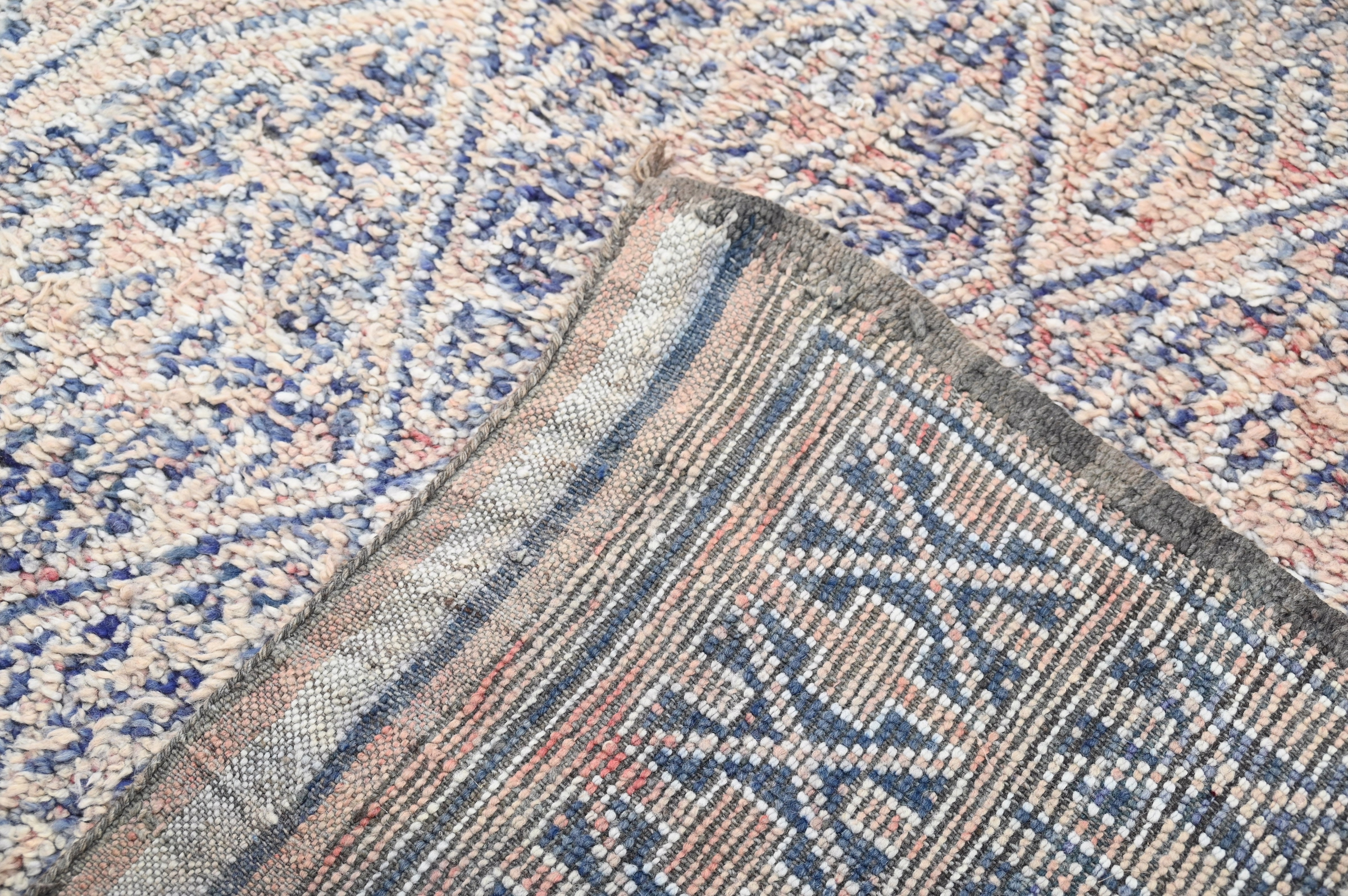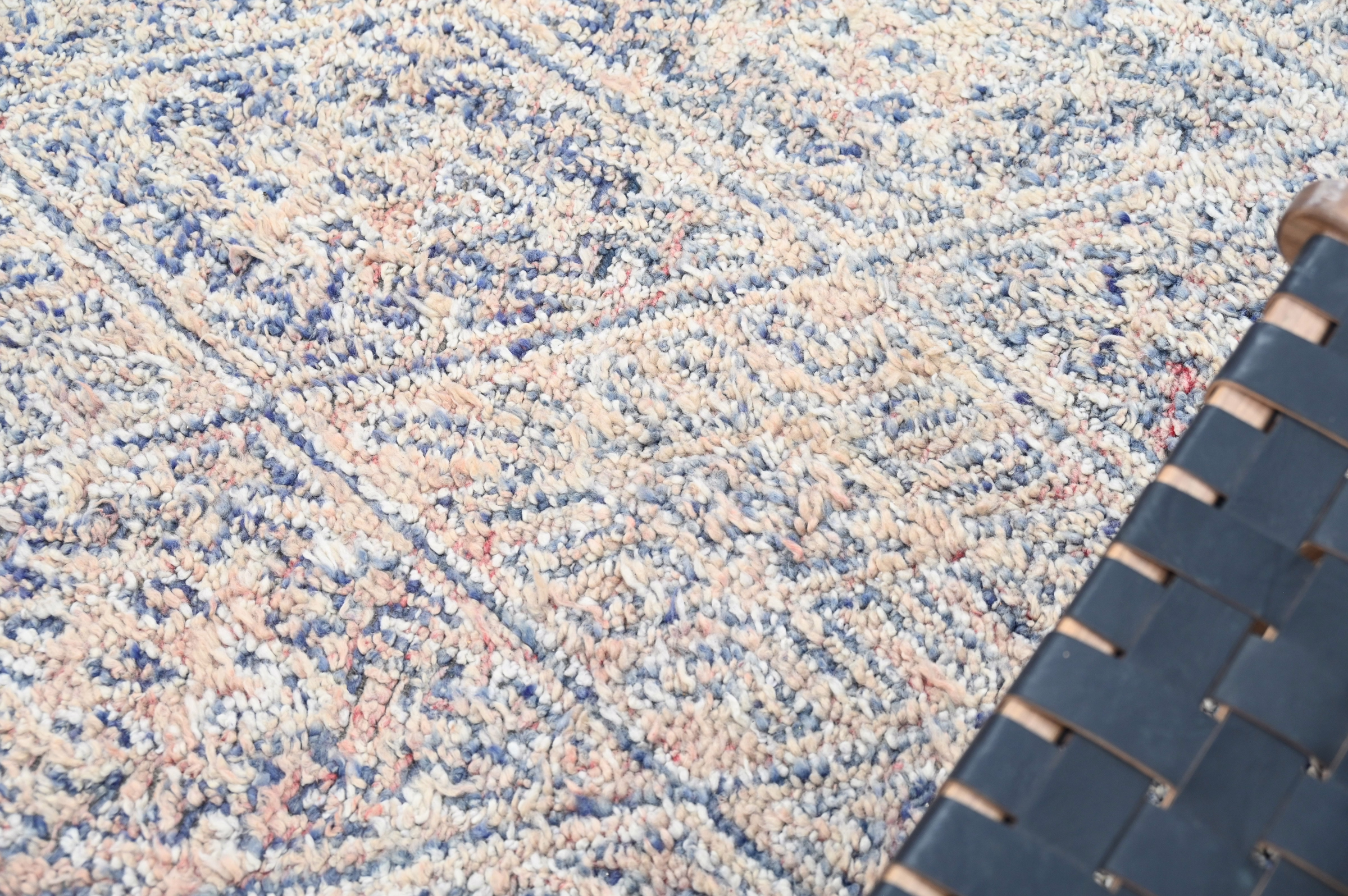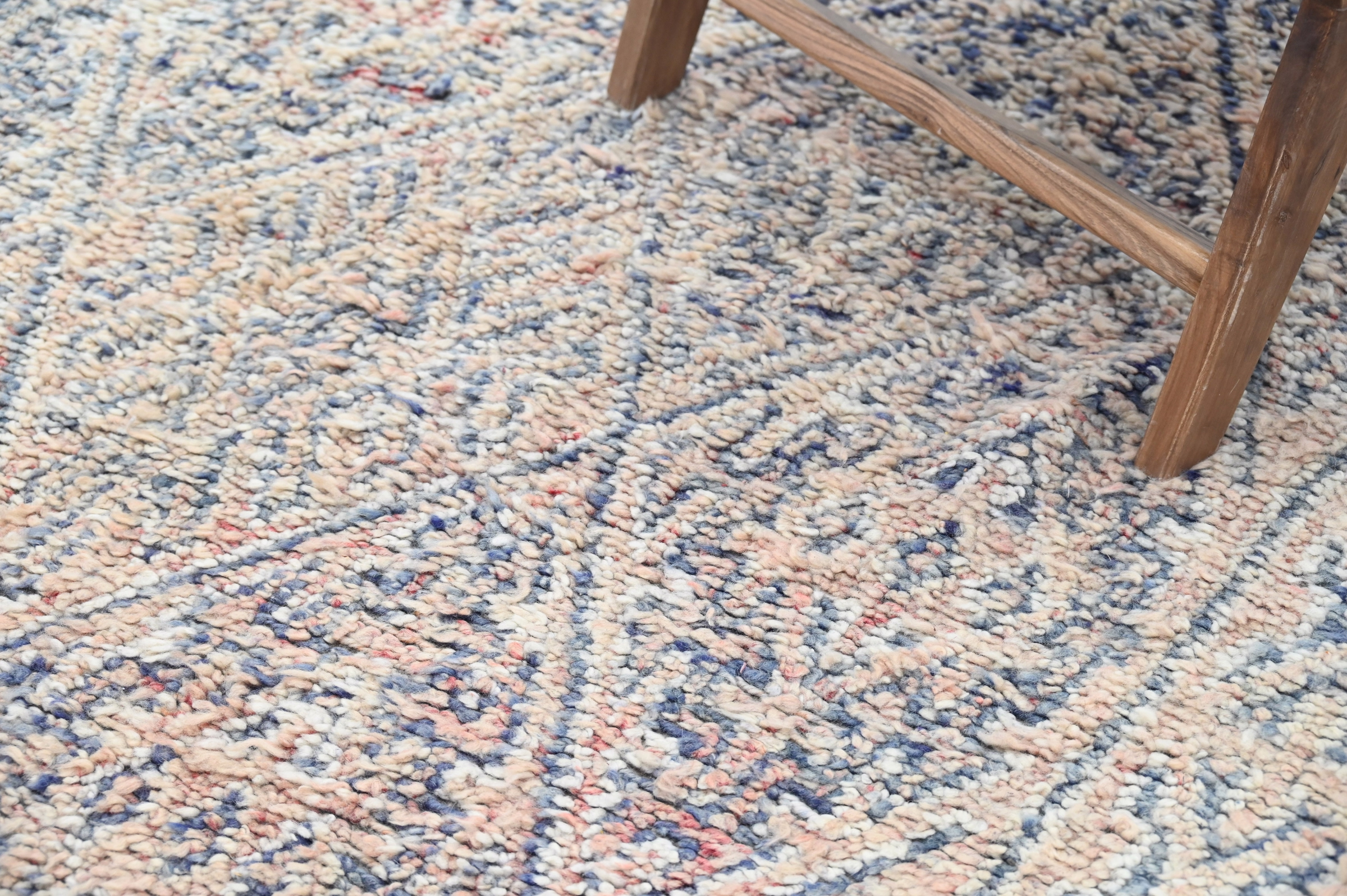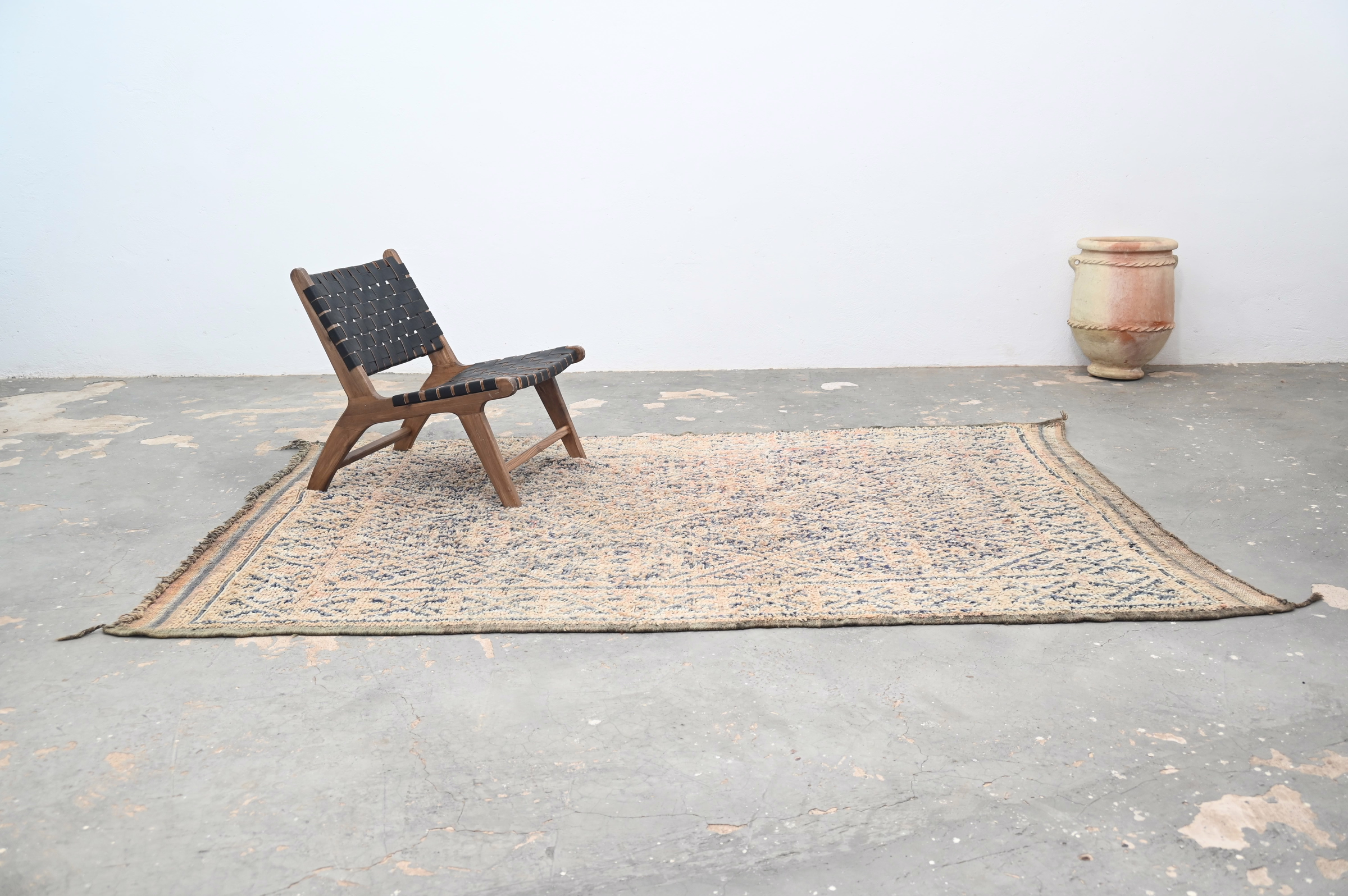 Handwoven in the Atlas Mountains, each piece emerges from a dialogue between material and maker. Measuring 285 × 183 cm, this piece carries the quiet rhythm of slow craftsmanship—wool prepared by hand, patterns emerging over weeks of focused work.