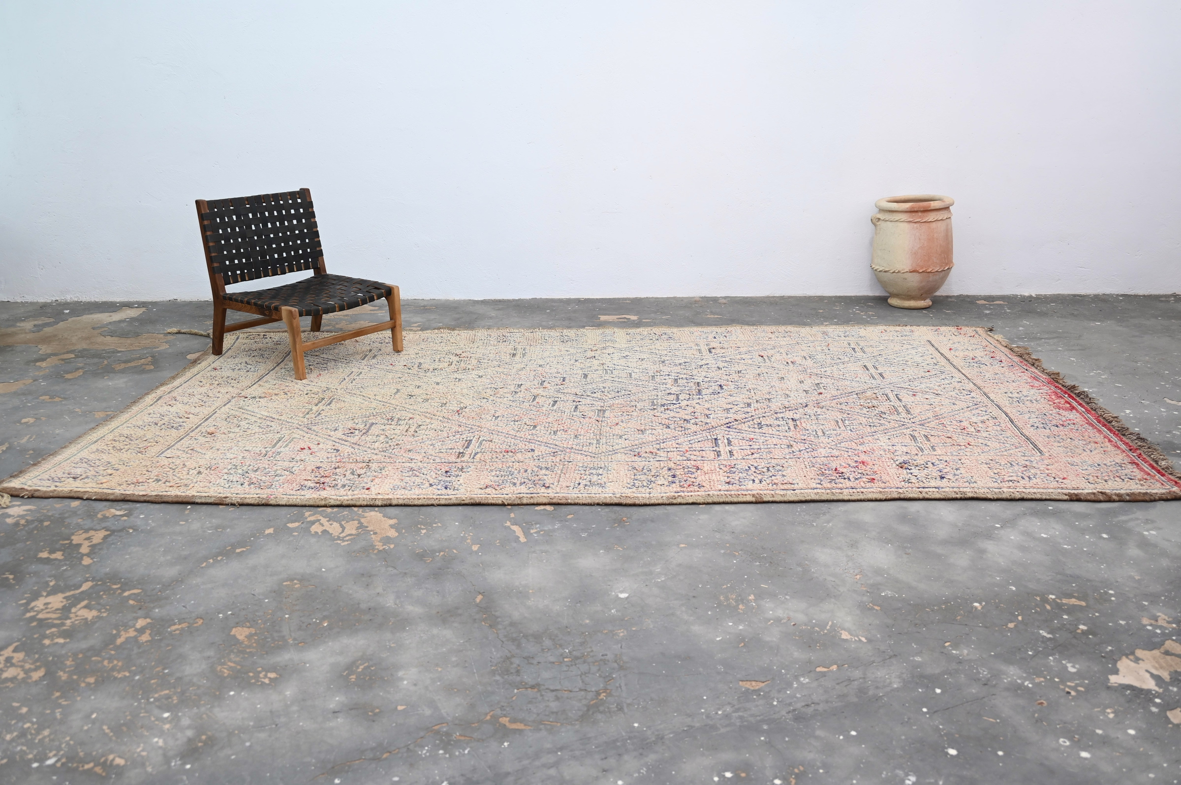 From the Atlas Mountains comes this singular textile, woven without haste in the tradition of generations. Measuring 395 × 222 cm, this piece embodies the principle that meaningful objects require time, attention, and human intention.