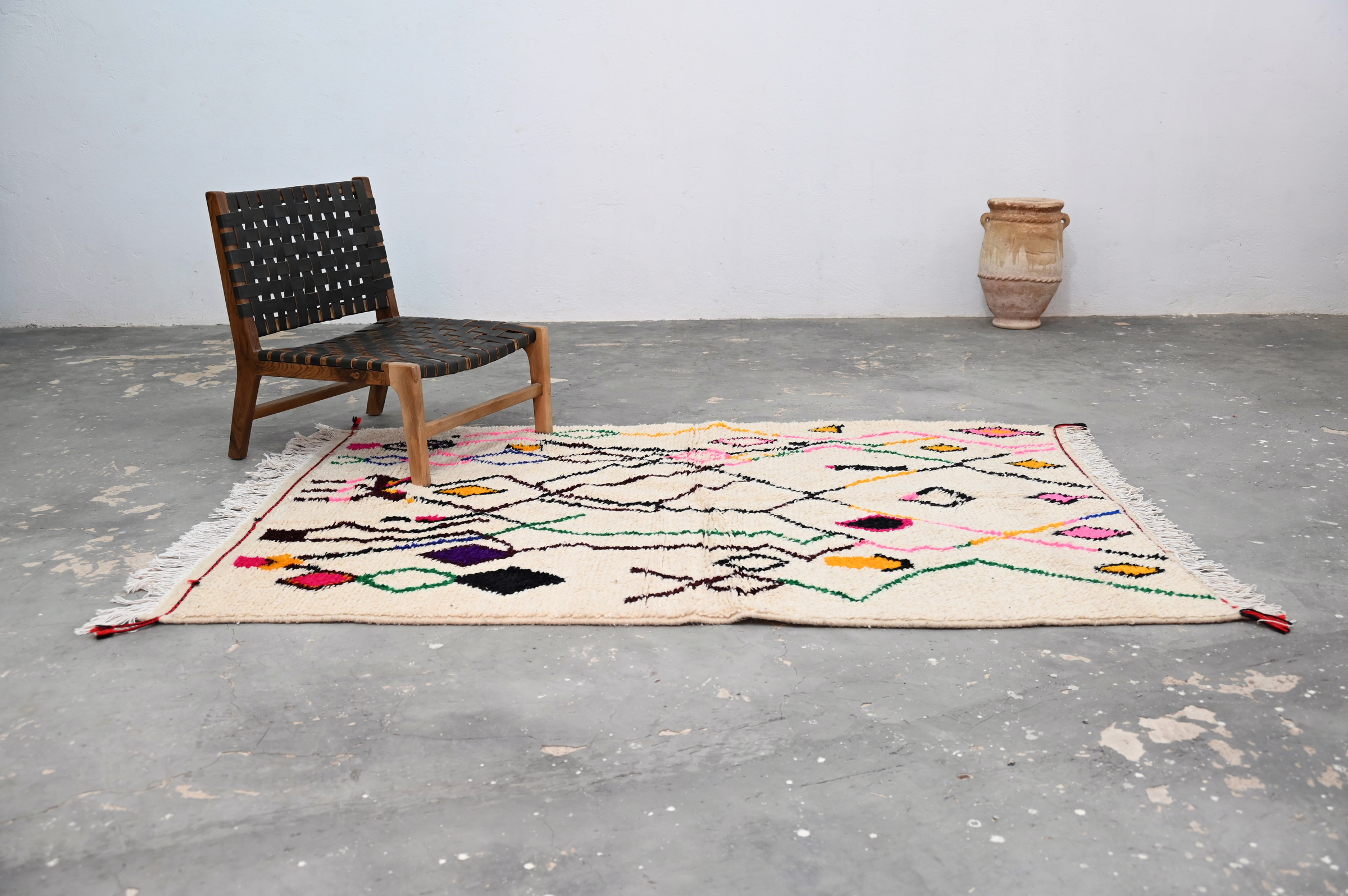 From the Azilal region of the Middle Atlas comes this singular textile, woven without haste in the tradition of generations. Measuring 214 × 144 cm, this piece embodies the principle that meaningful objects require time, attention, and human intention.