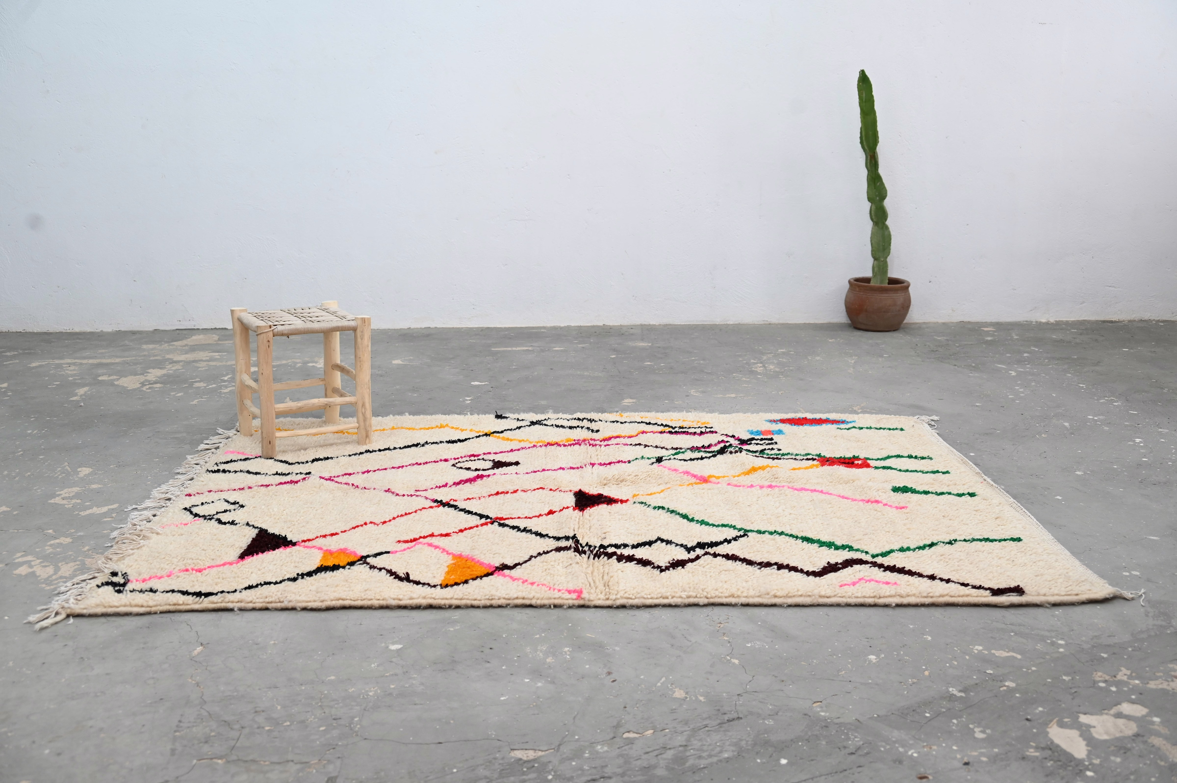 From the Azilal region of the Middle Atlas comes this singular textile, woven without haste in the tradition of generations. Measuring 228 × 152 cm, this piece embodies the principle that meaningful objects require time, attention, and human intention.