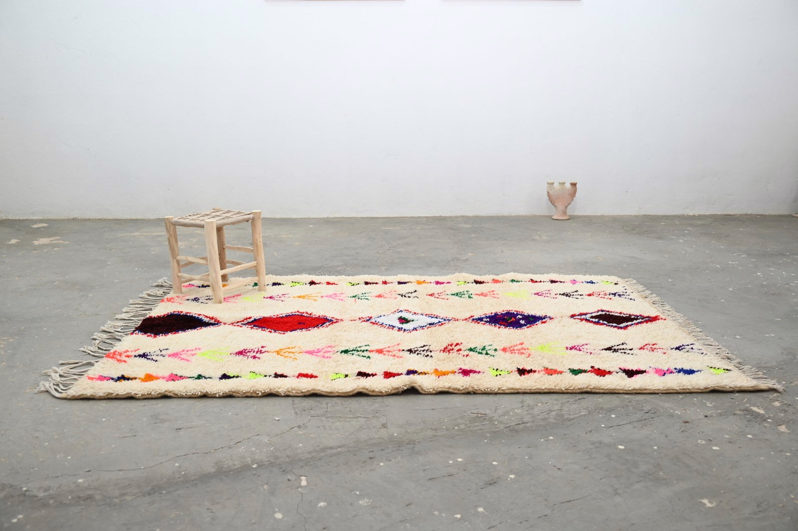 From the Azilal region of the Middle Atlas comes this singular textile, woven without haste in the tradition of generations. Measuring 231 × 152 cm, this piece embodies the principle that meaningful objects require time, attention, and human intention.