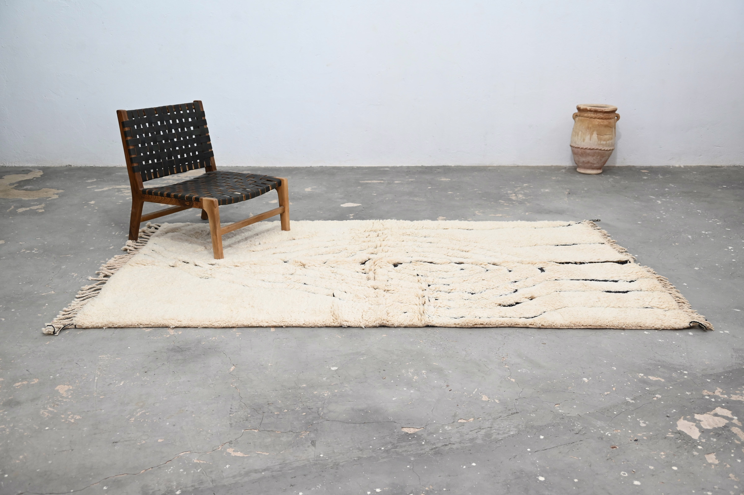 A textile of uncommon presence from the Azilal region of the Middle Atlas. Measuring 262 × 146 cm, this piece represents the intersection of ancestral technique and contemporary restraint—a piece for interiors that value substance over statement.
