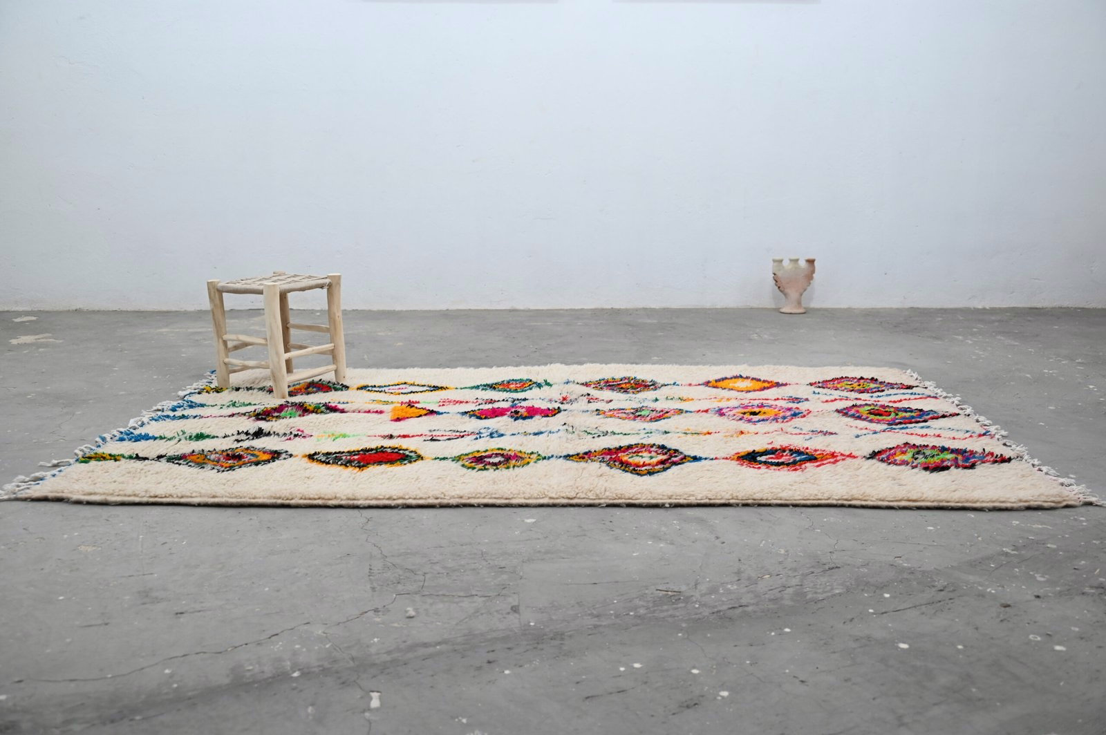 From the Azilal region of the Middle Atlas comes this singular textile, woven without haste in the tradition of generations. Measuring 262 × 157 cm, this piece embodies the principle that meaningful objects require time, attention, and human intention.