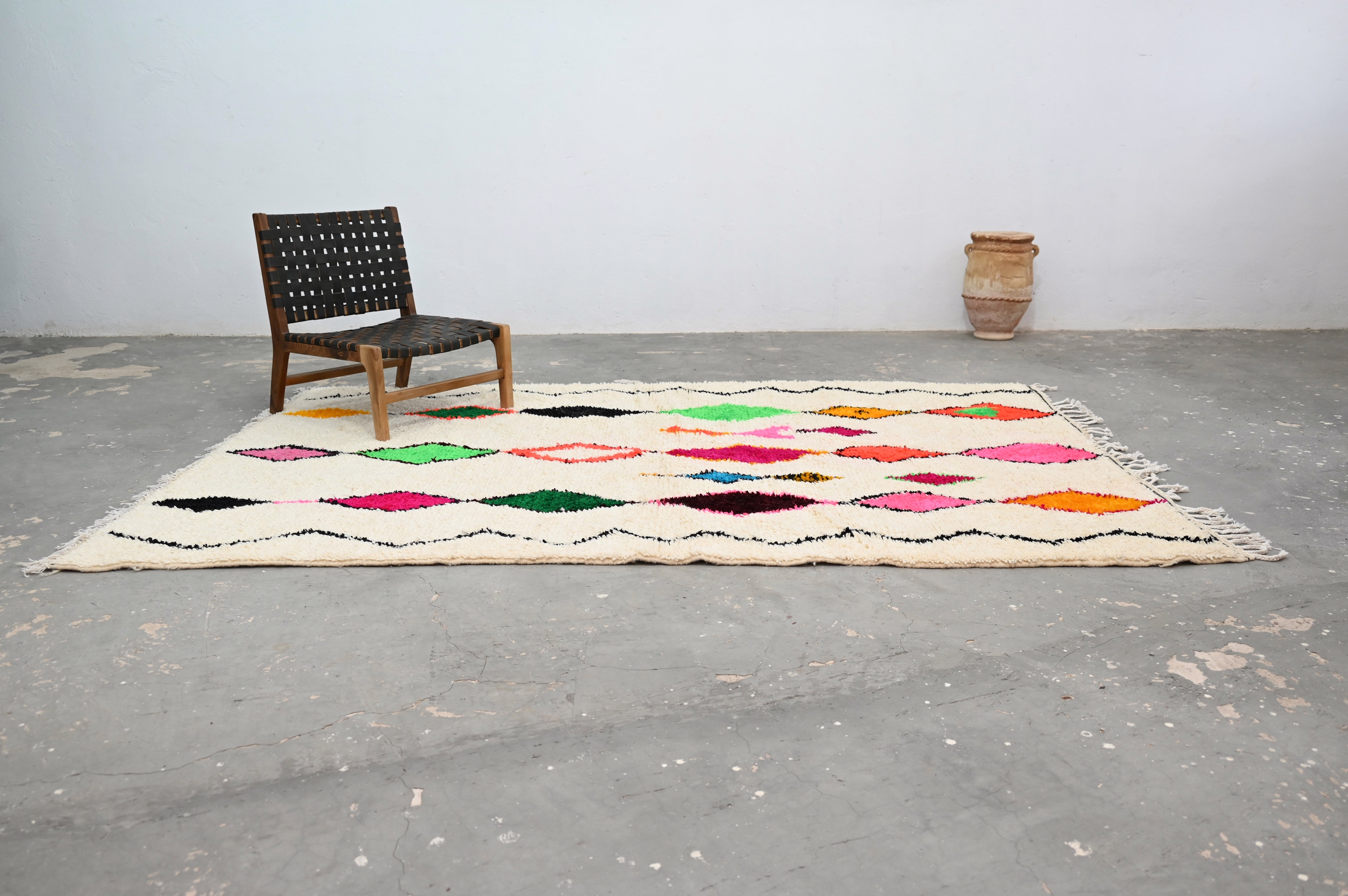 From the Azilal region of the Middle Atlas comes this singular textile, woven without haste in the tradition of generations. Measuring 300 × 195 cm, this piece embodies the principle that meaningful objects require time, attention, and human intention.
